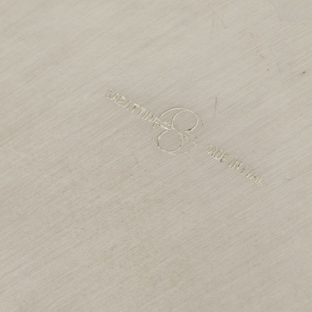 This elegant wide-necked glass carafe, which still bears the maker’s sticker, sits within a silver-plated bowl with a rolled edge. It’s typical of Sabattini’s finely tuned production in metal, with a cut-out steel cap that reveals the lip.