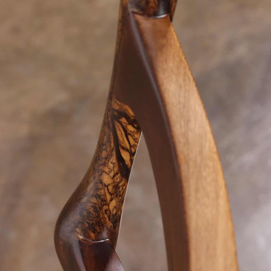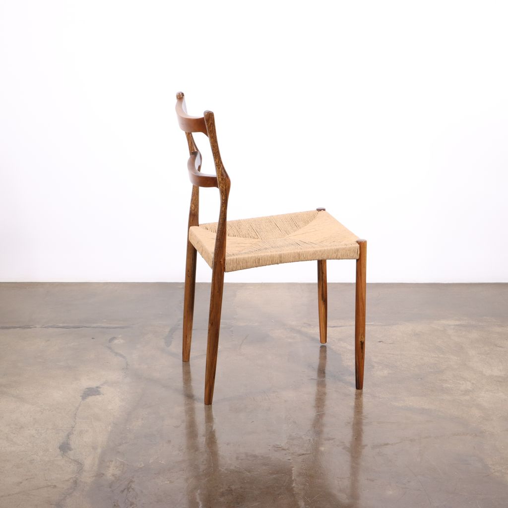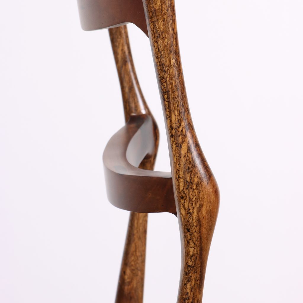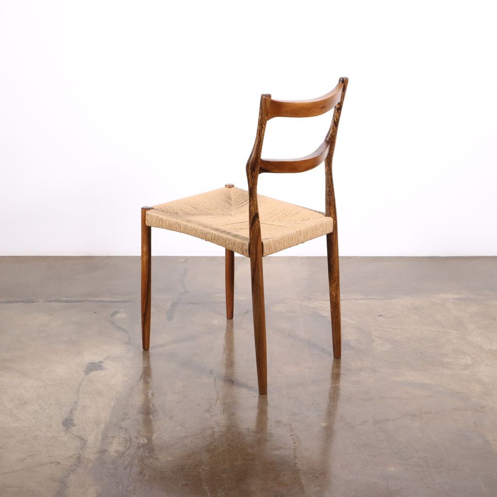 Our homage to Gio Ponti’s Superleggera chair features a thin hand-carved frame and hand woven rush seat. Shown in Argentine Rosewood with carefully selected planks to maximize landscaping across the carved details on the back leg. Available as shown or in the wood, finish and upholstery of your choice, or with hand woven rush as shown.