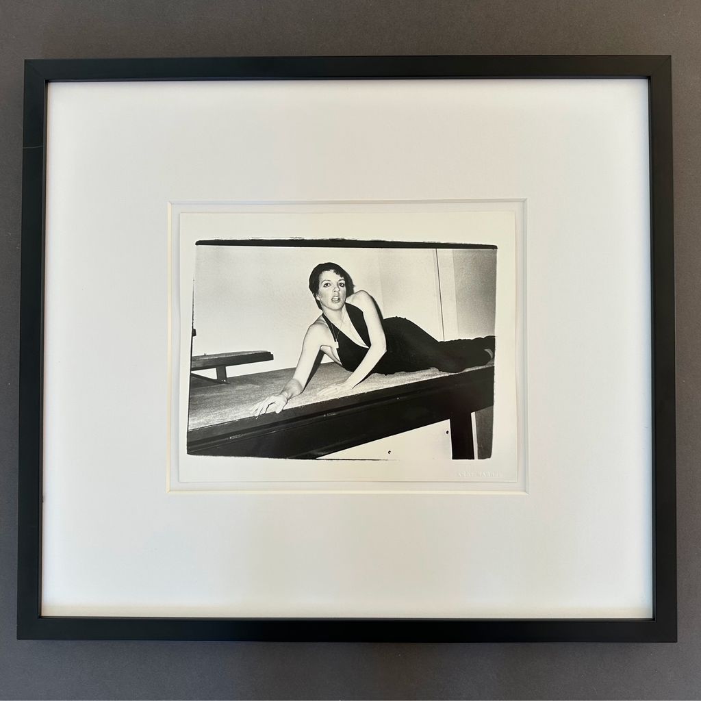 Framed photograph of Liza Minnelli posing in Halston's Apartment, circa 1979, by Andy Warhol. This is a unique work. This work is stamped on the verso by the Estate of the Artist and The Andy Warhol Foundation for the Visual Arts and also includes a Foundation number which is written on verso. Work comes with a Certificate of Provenance.