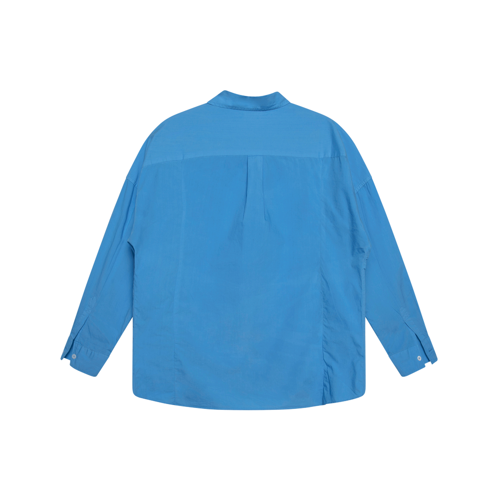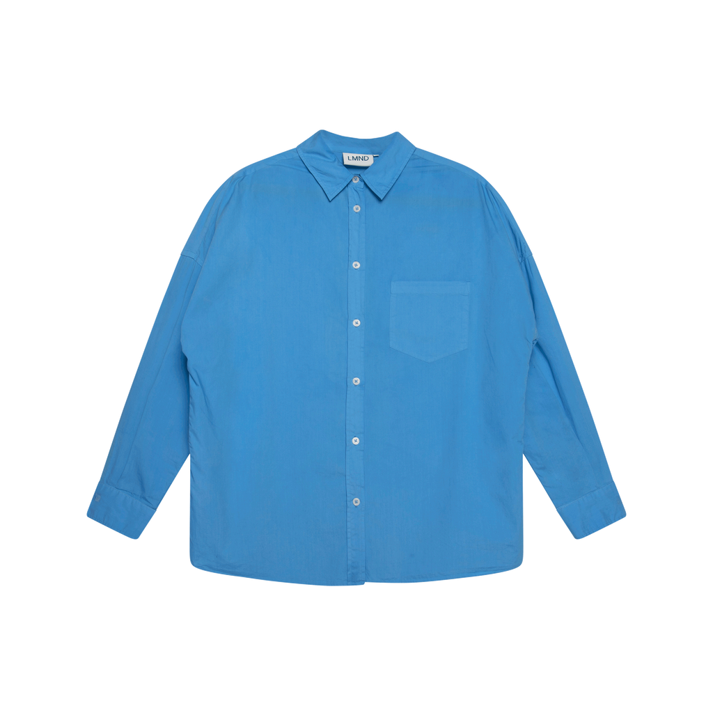 LMND The Ciara Shirt features relaxed fit, chest pocket, drop shoulders, and front button closure.