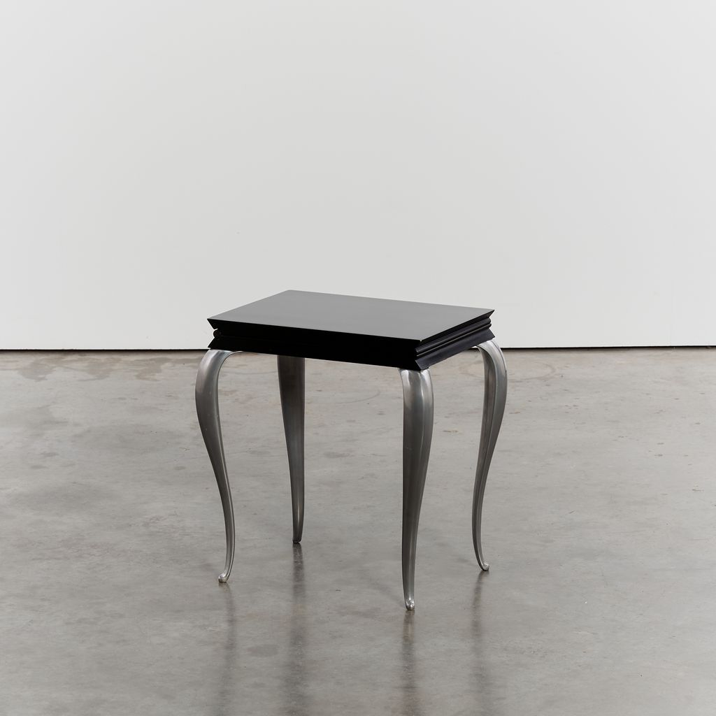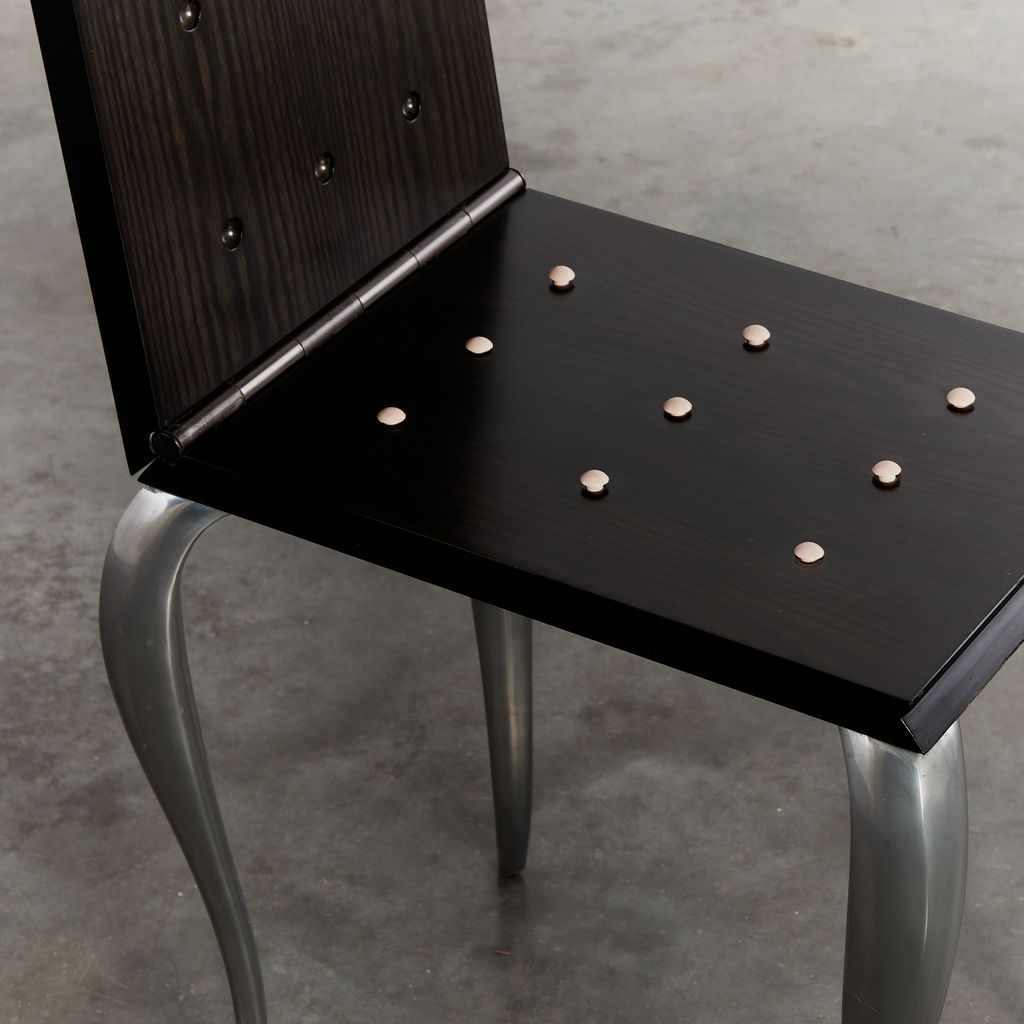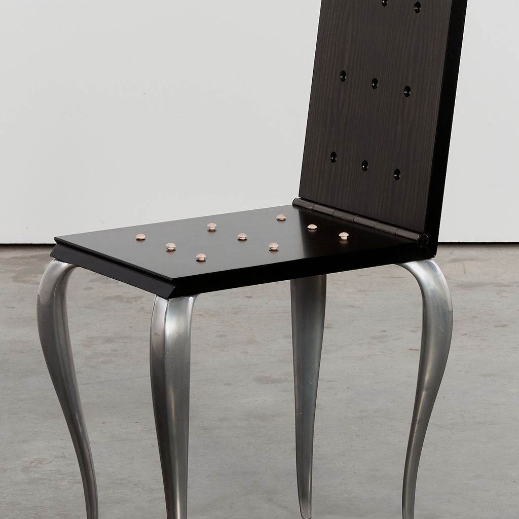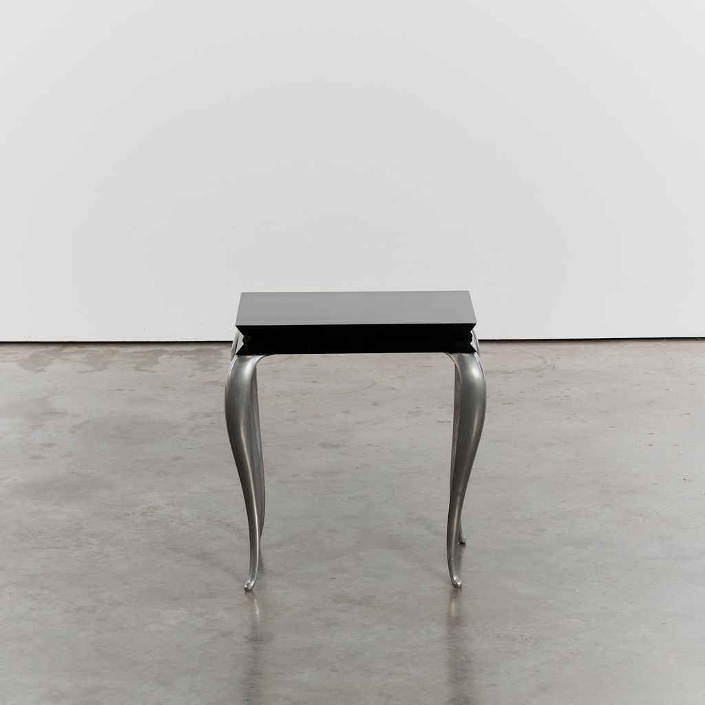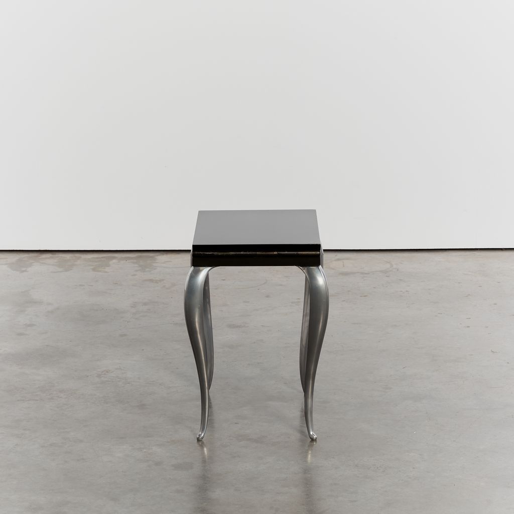The Lola Mundo chair / side table is distinctive for both its adaptability and for its nod to Louis XV-style with the cabriole legs. With statement cast aluminium legs and contrasting rubber seat buttons, this collectable piece is in good vintage condition.