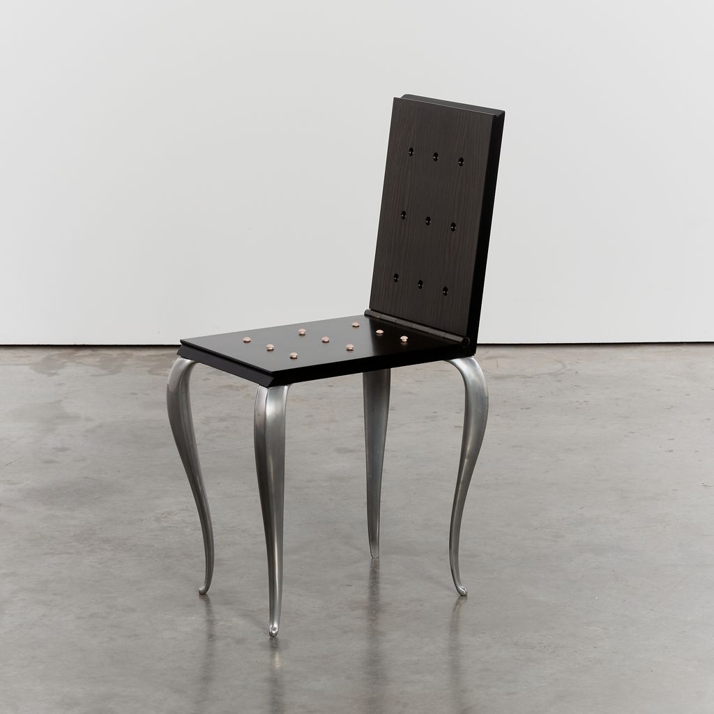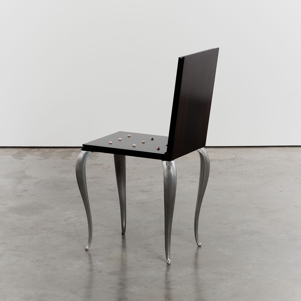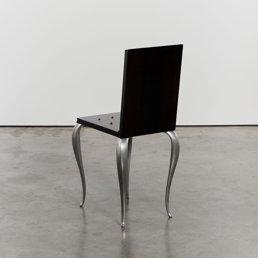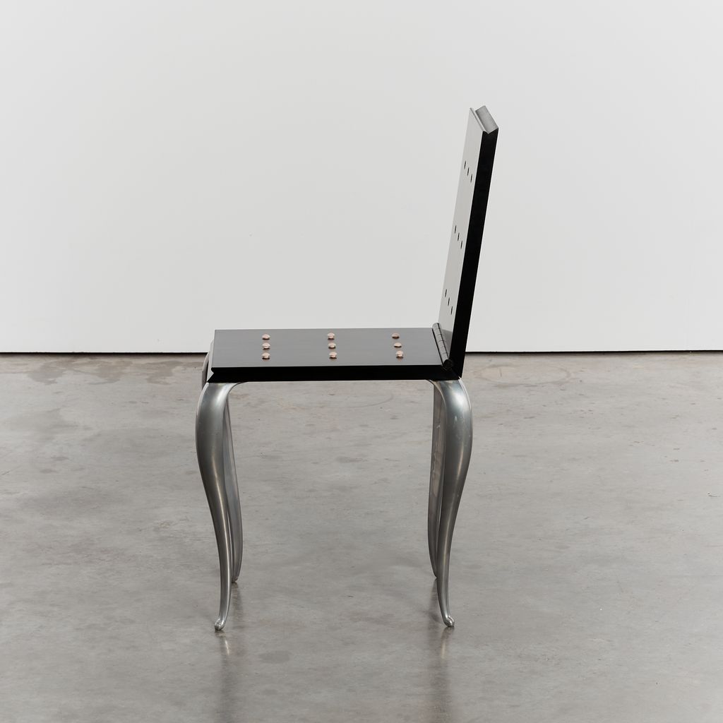 The Lola Mundo chair / side table is distinctive for both its adaptability and for its nod to Louis XV-style with the cabriole legs. With statement cast aluminium legs and contrasting rubber seat buttons, this collectable piece is in good vintage condition.