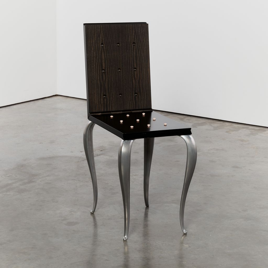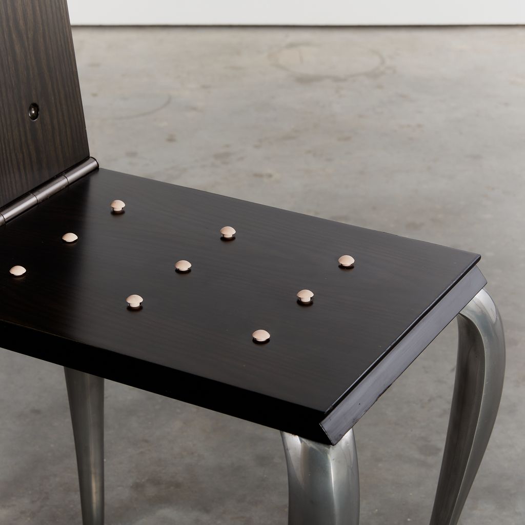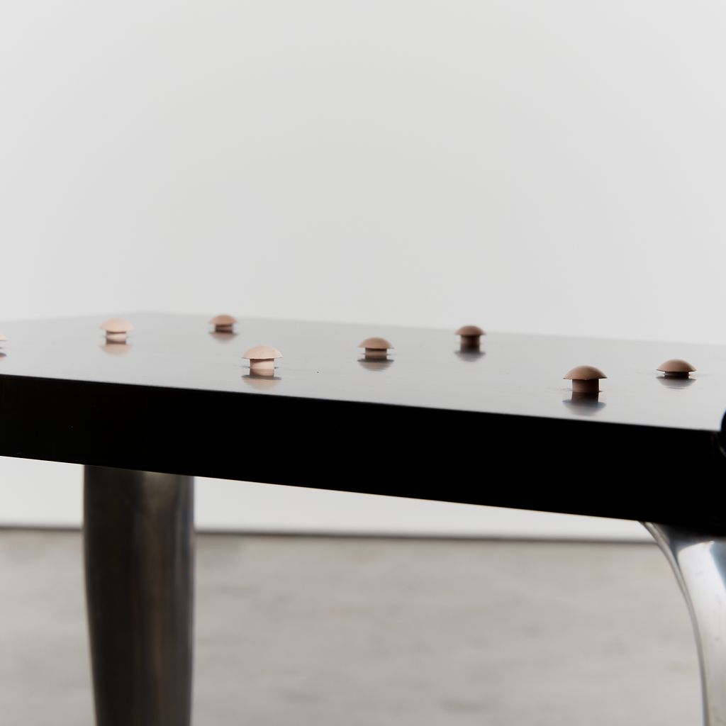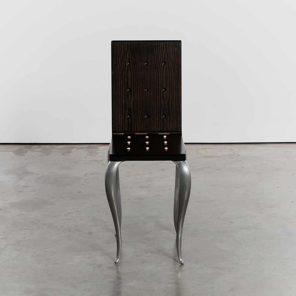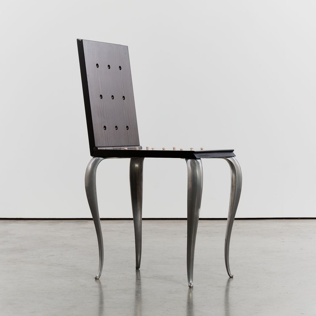 The Lola Mundo chair / side table is distinctive for both its adaptability and for its nod to Louis XV-style with the cabriole legs. With statement cast aluminium legs and contrasting rubber seat buttons, this collectable piece is in good vintage condition.