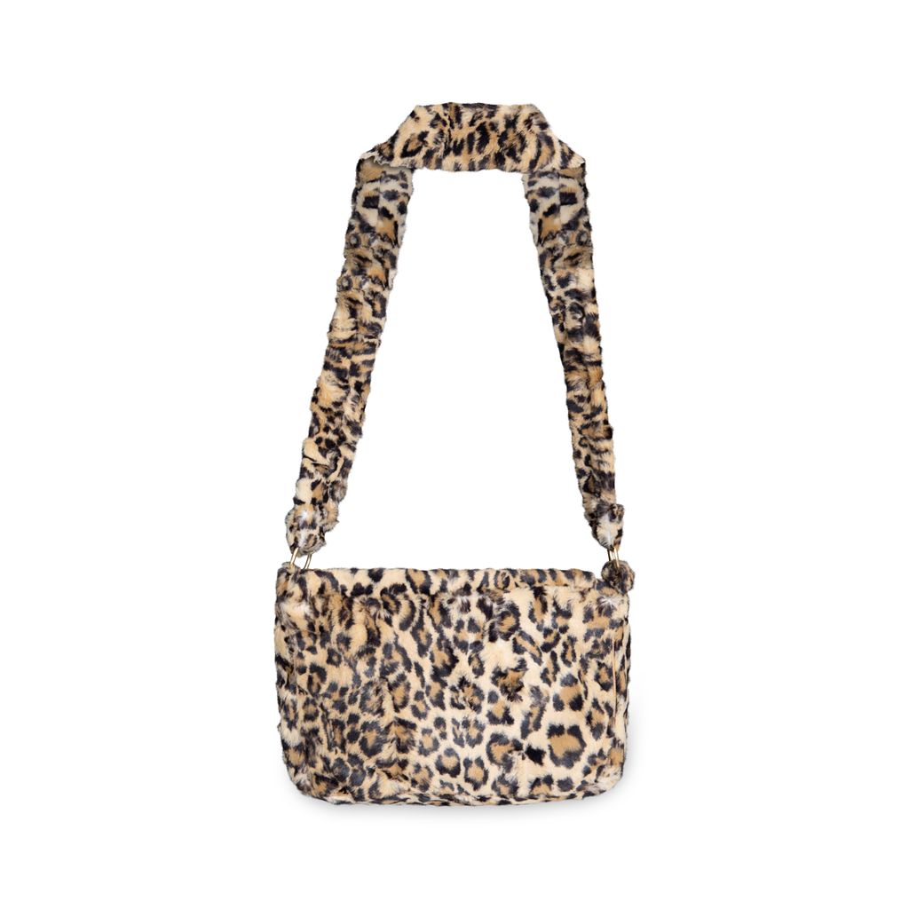 Lolita Jade Cheetah Print Messenger Purse features a flap and zipper closure, silky lining, and an interior zipper pocket.