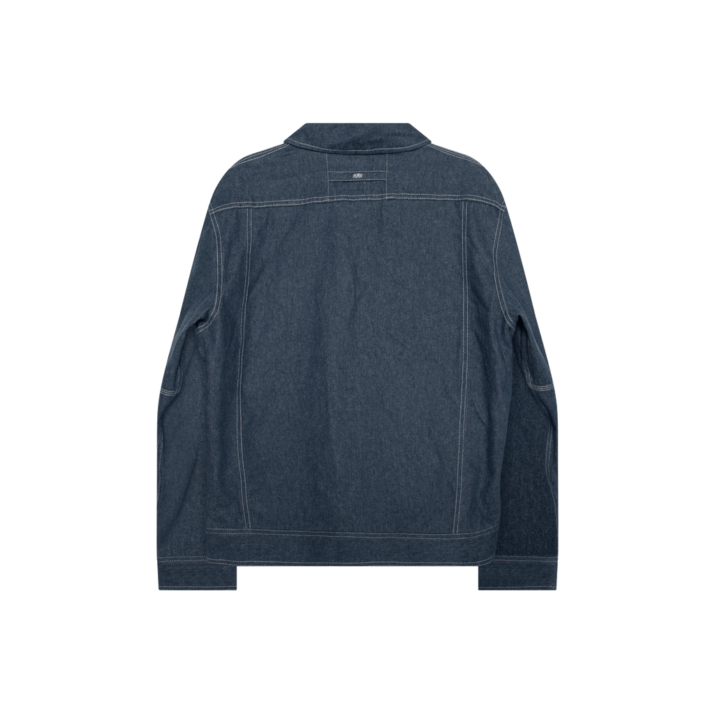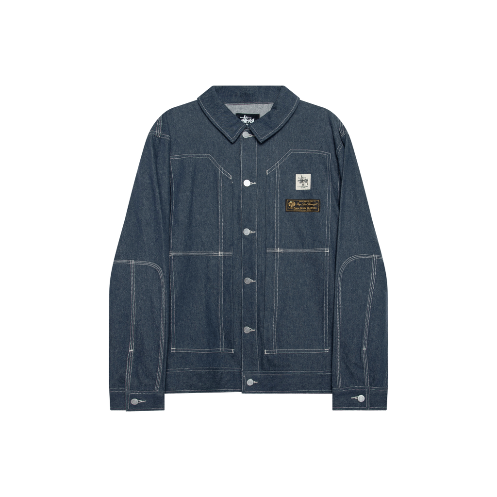 Loro Piana x Stussy Denim Jacket features four front pockets, front button closure, woven brand patch, and 100% cotton.