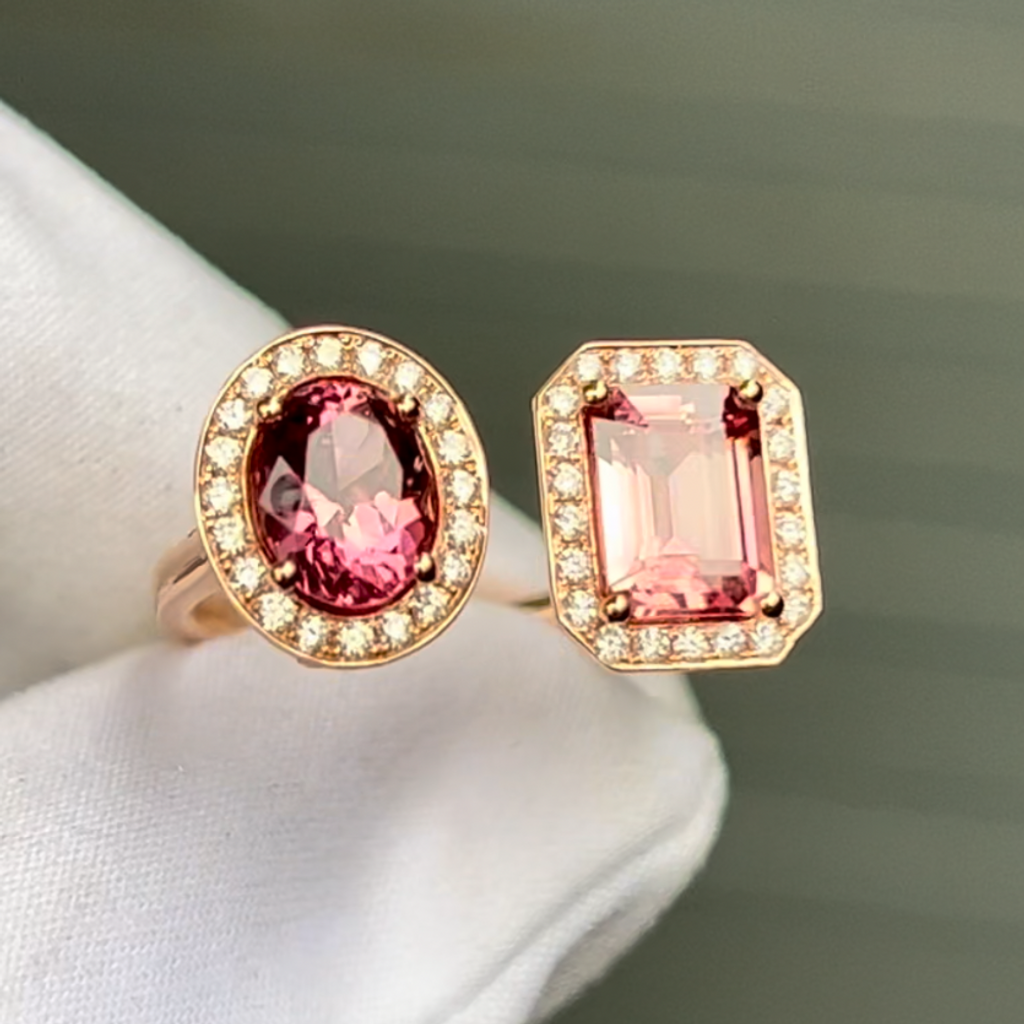 This is a beautiful Rose Gold ring with VS+ Diamonds and Lotus Garnet Centerpieces Size 6