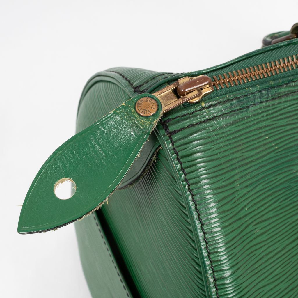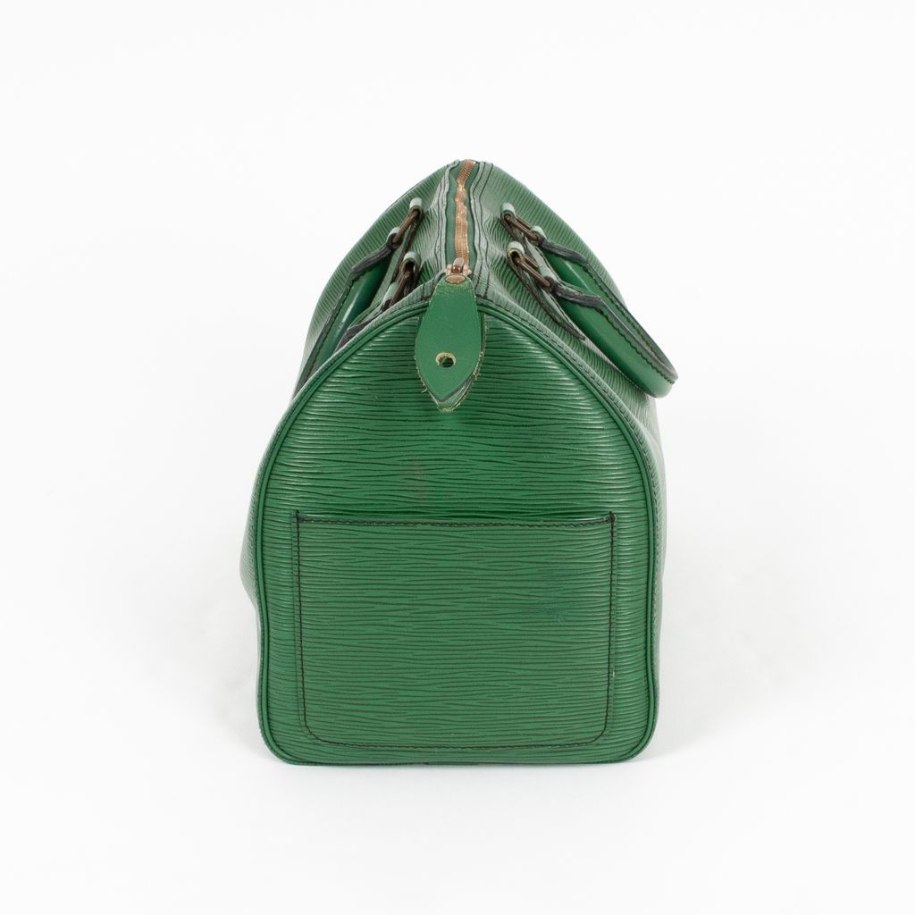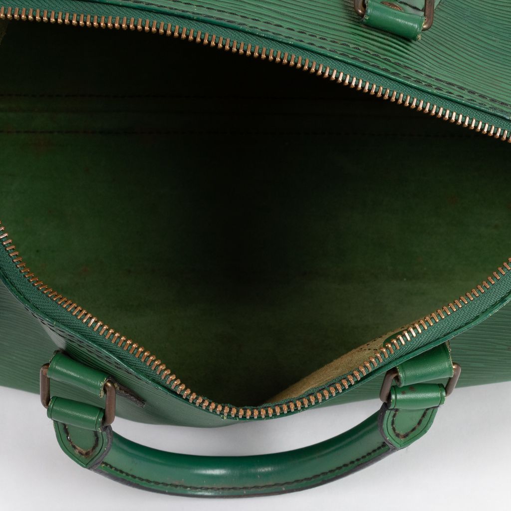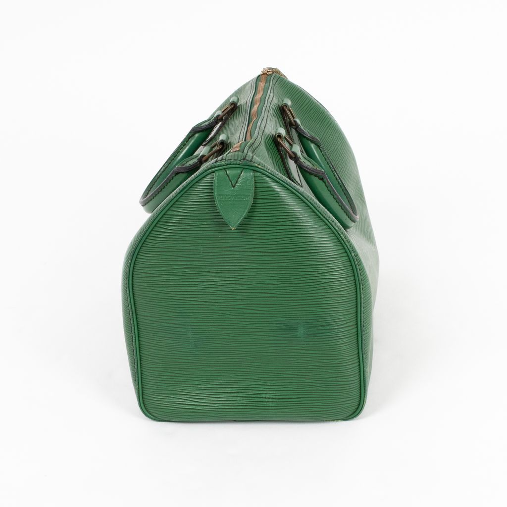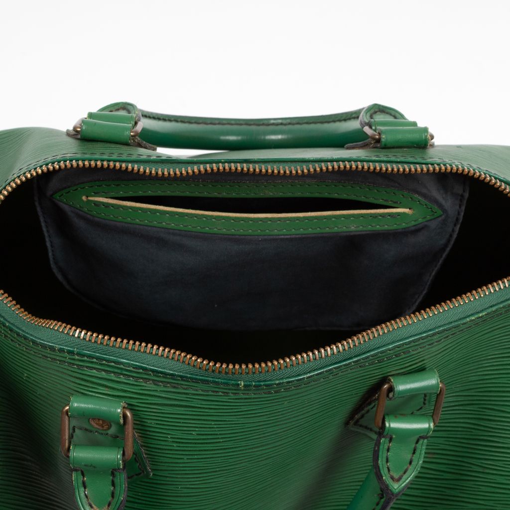 This mini duffle style purse from Louis Vuitton is a fun carryall for any season. Features grooved leather body with LV embossed monogram on front, zip top closure with leather pull tab, single side pocket, set of top handles for carrying, and small inner pocket.