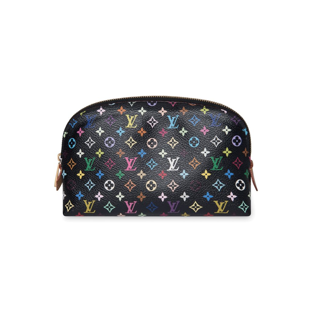 Louis Vuitton x Takashi Murakami Monogram Multicolor Cosmetic Pouch features gold hardware and coated canvas exterior.