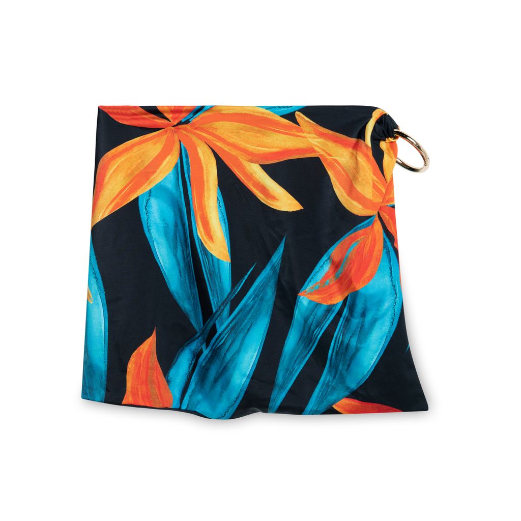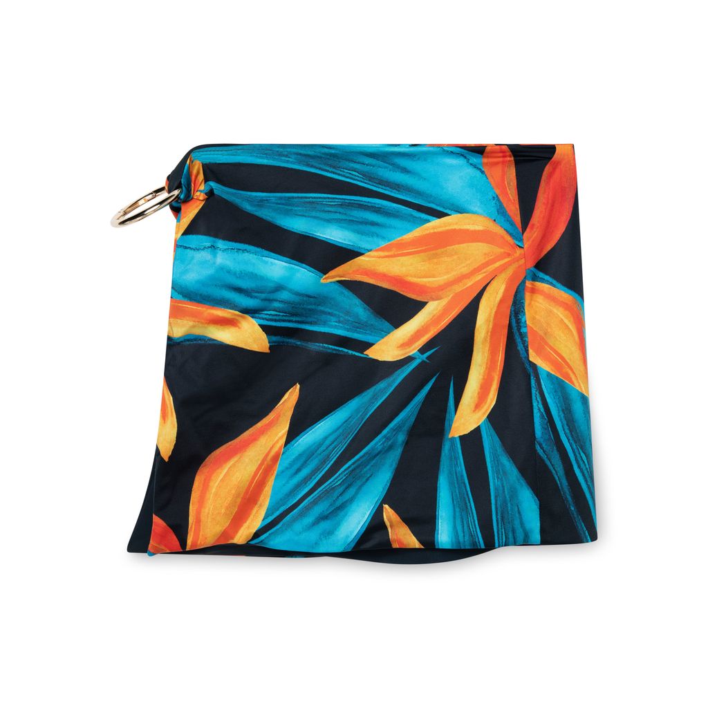 Louisa Ballou Double Ring Swim Skirt in Blue features leave pattern.