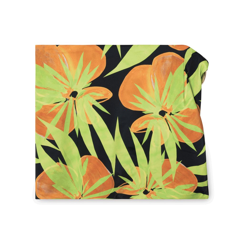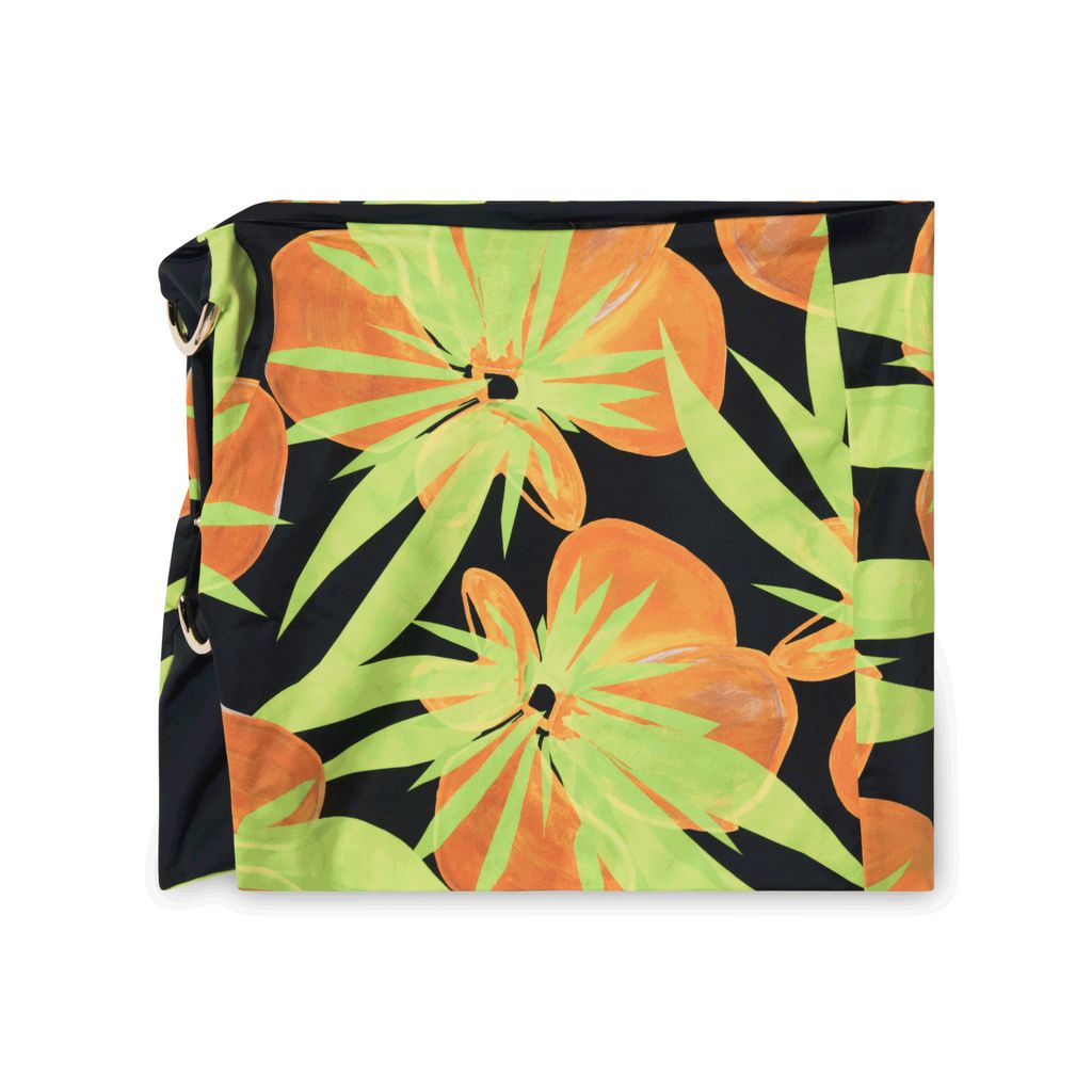 Louisa Ballou Double Ring Mini Skirt in sublime flower features gold ring enclosures.