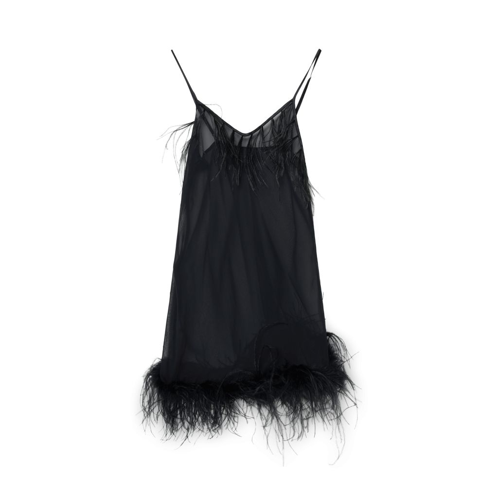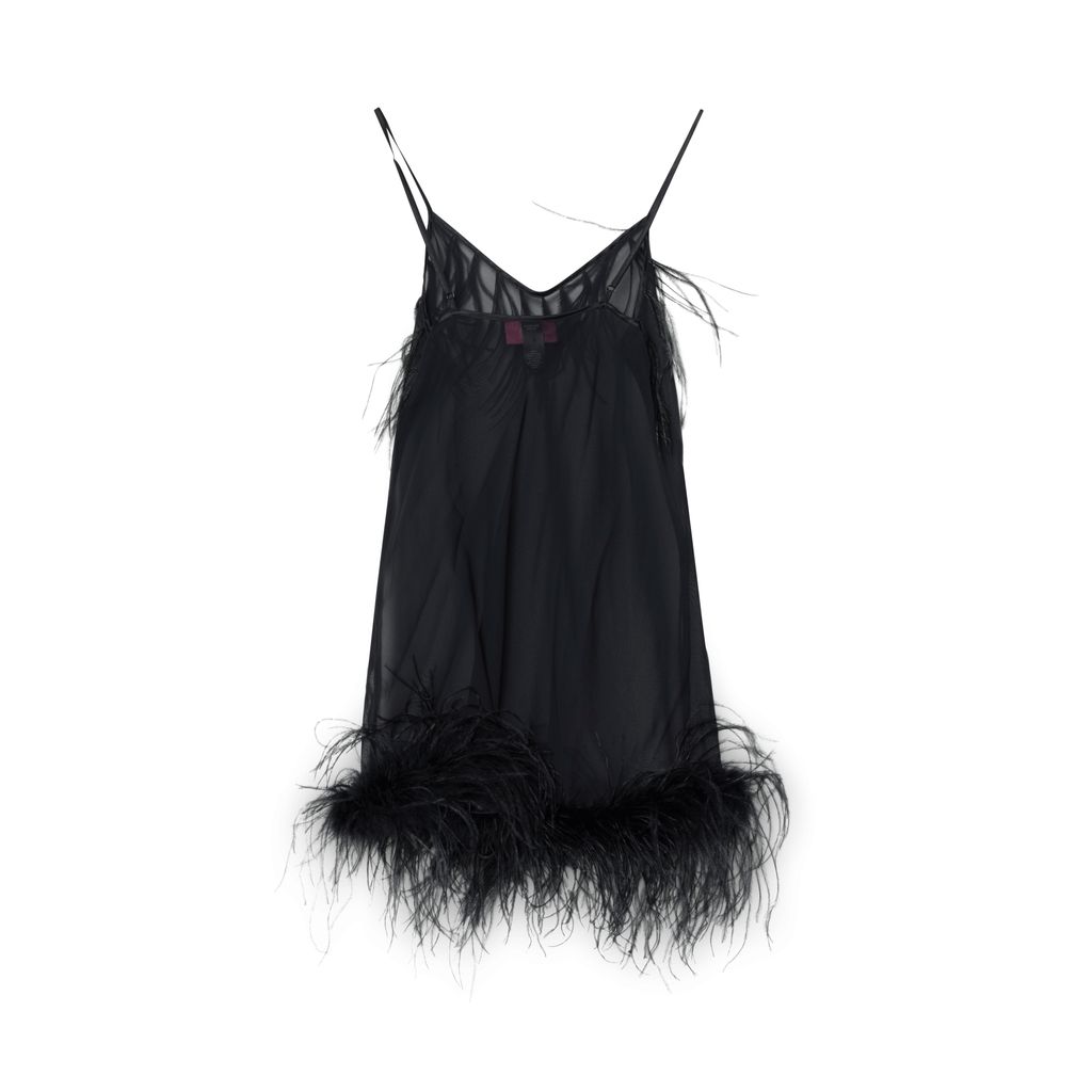 Love by La Senza black babydoll features feathering on the chest and bottom.