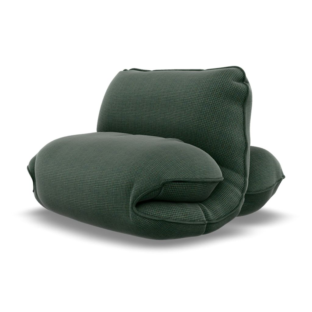 A fully frameless seating design filled with Dutch wool. Built without foam or internal structure. The form is created by folding the cover filled with wool, creating natural support and long lasting comfort.