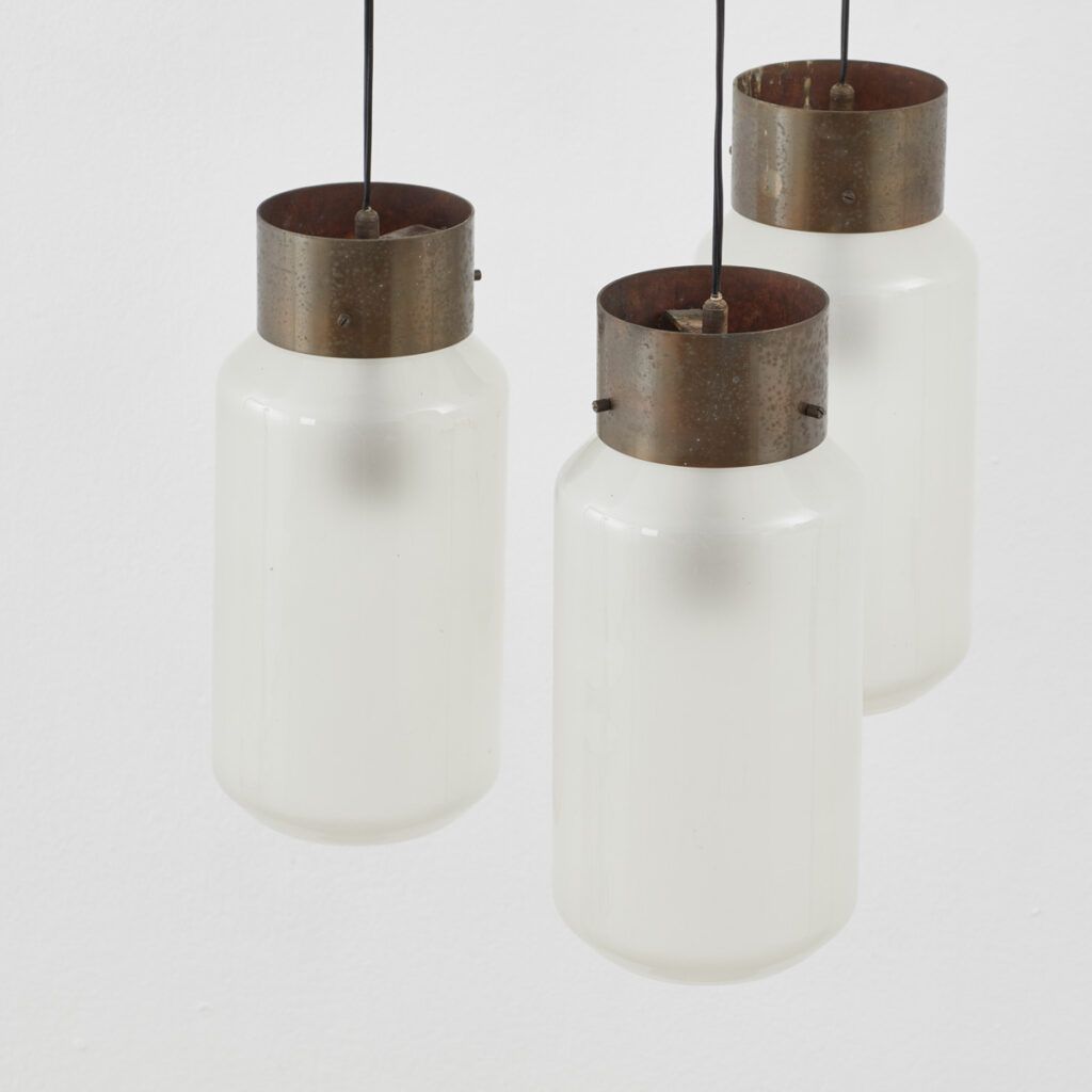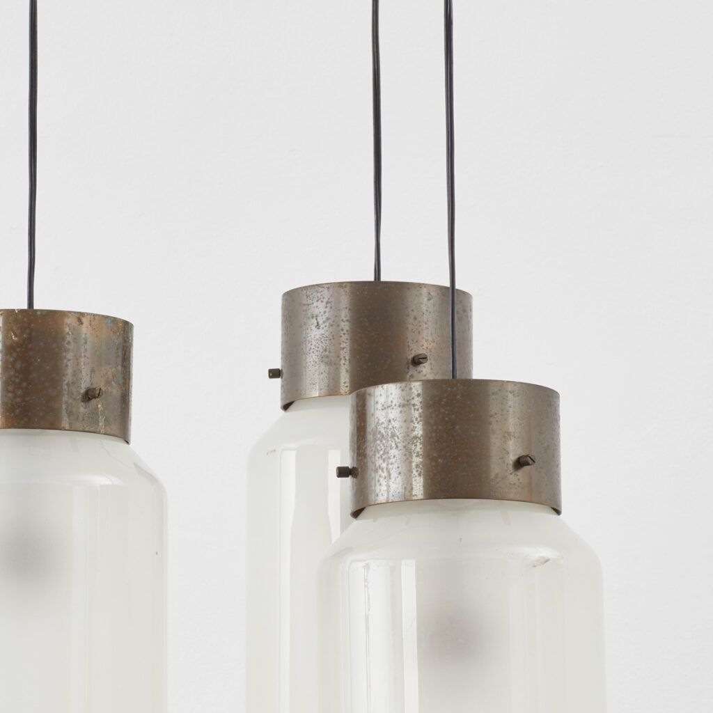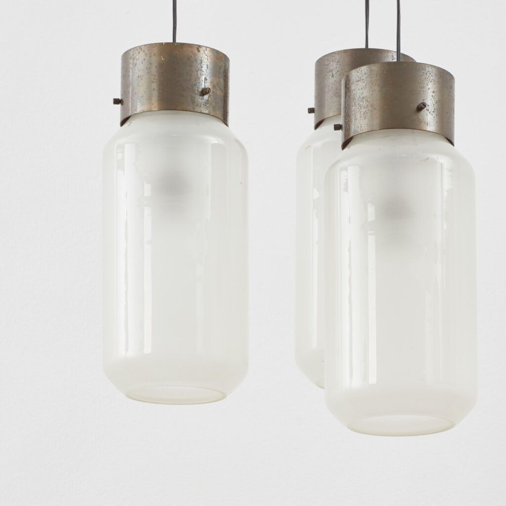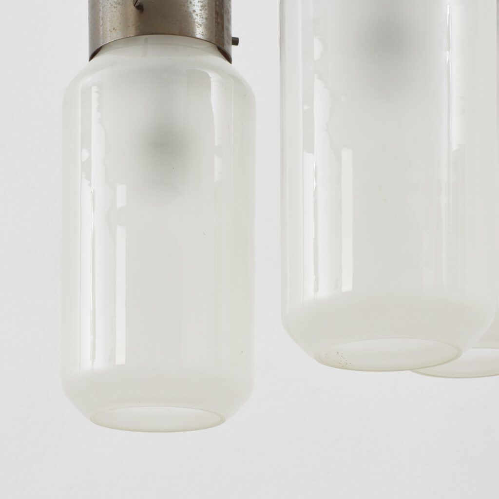 The Bidone light is designed so that it can be adjusted across several heights. Made from nickel-coated brass and frosted hand-blown glass, the design is elegant and sleek yet has an understated functional feel.