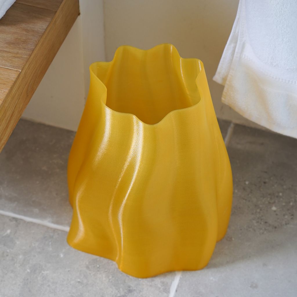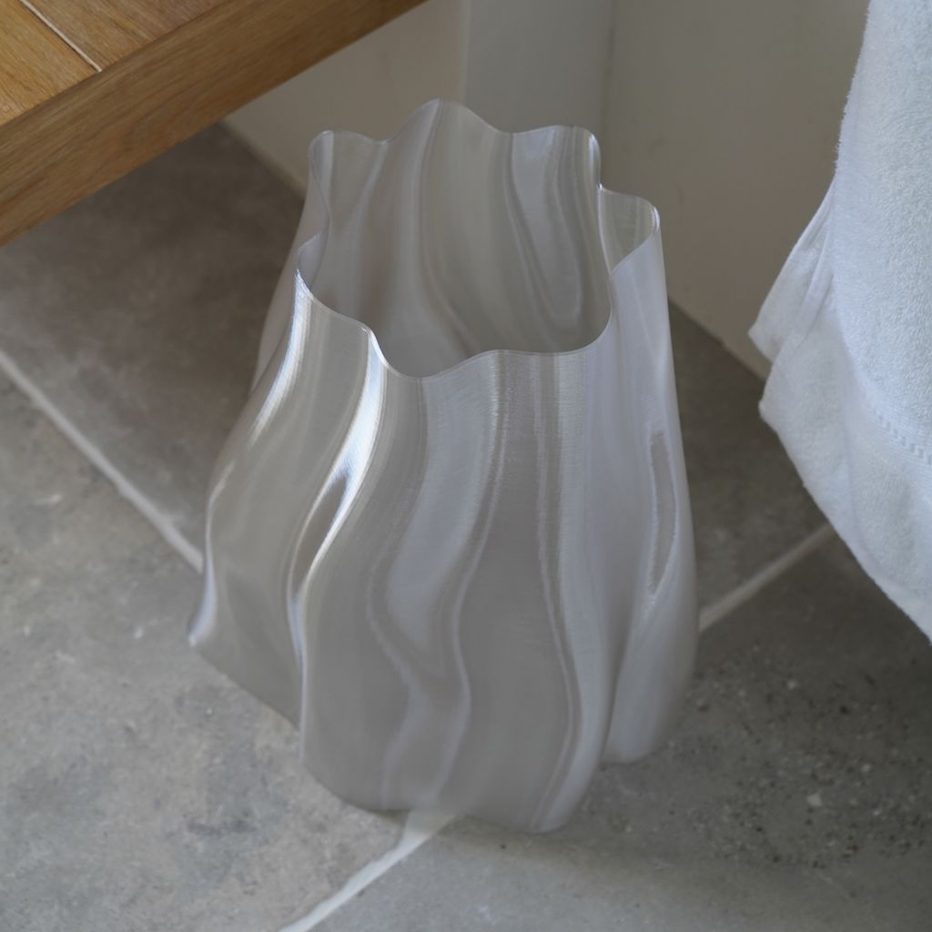 The Lulu Waste Bin combines elegance and practicality with smooth curves and a subtle twist. Ideal for offices or bathrooms, its design elevates any setting while maintaining functionality