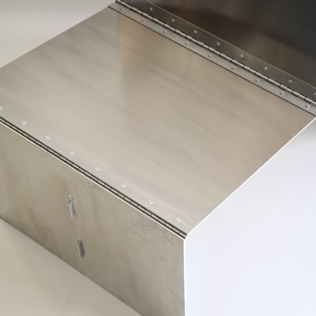 Born from the experience of frequent moves and the observation of excessive furniture waste on the streets of New York... FlatFlat started as founder Aidan Reinhold's senior thesis project at Parsons School of Design. Following his graduation in 2024, he exhibited the collection, then just consisting of the FoldSeat and FoldTable, at global design events. After some successful showings and media attention, he returned to New York City to grow the collection. FlatFlat is laser-cut locally from 100% American-made aluminum, and fabricated by hand in Brooklyn, NY with aluminum hinges and rivets, making it infinitely recyclable.