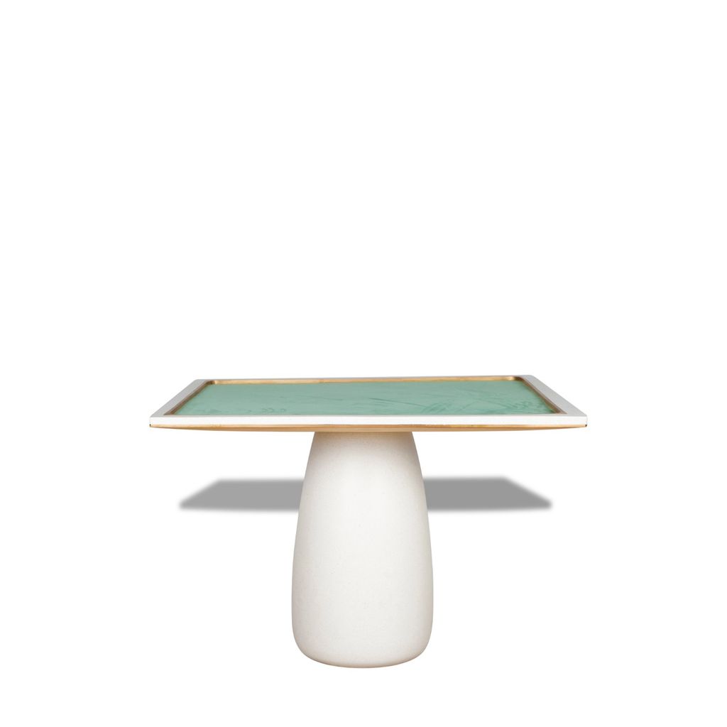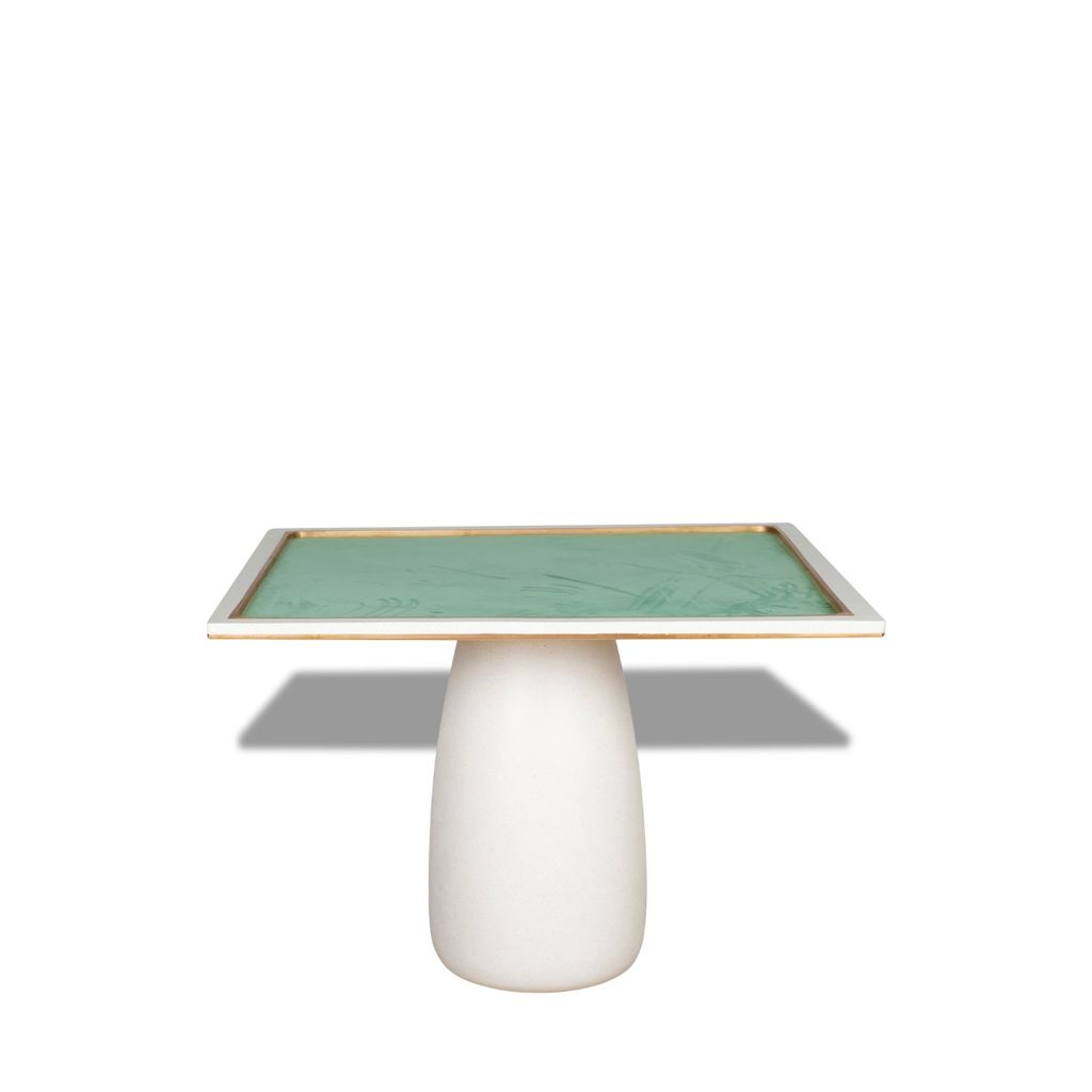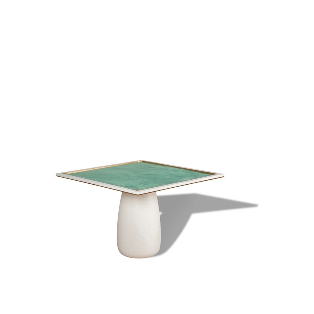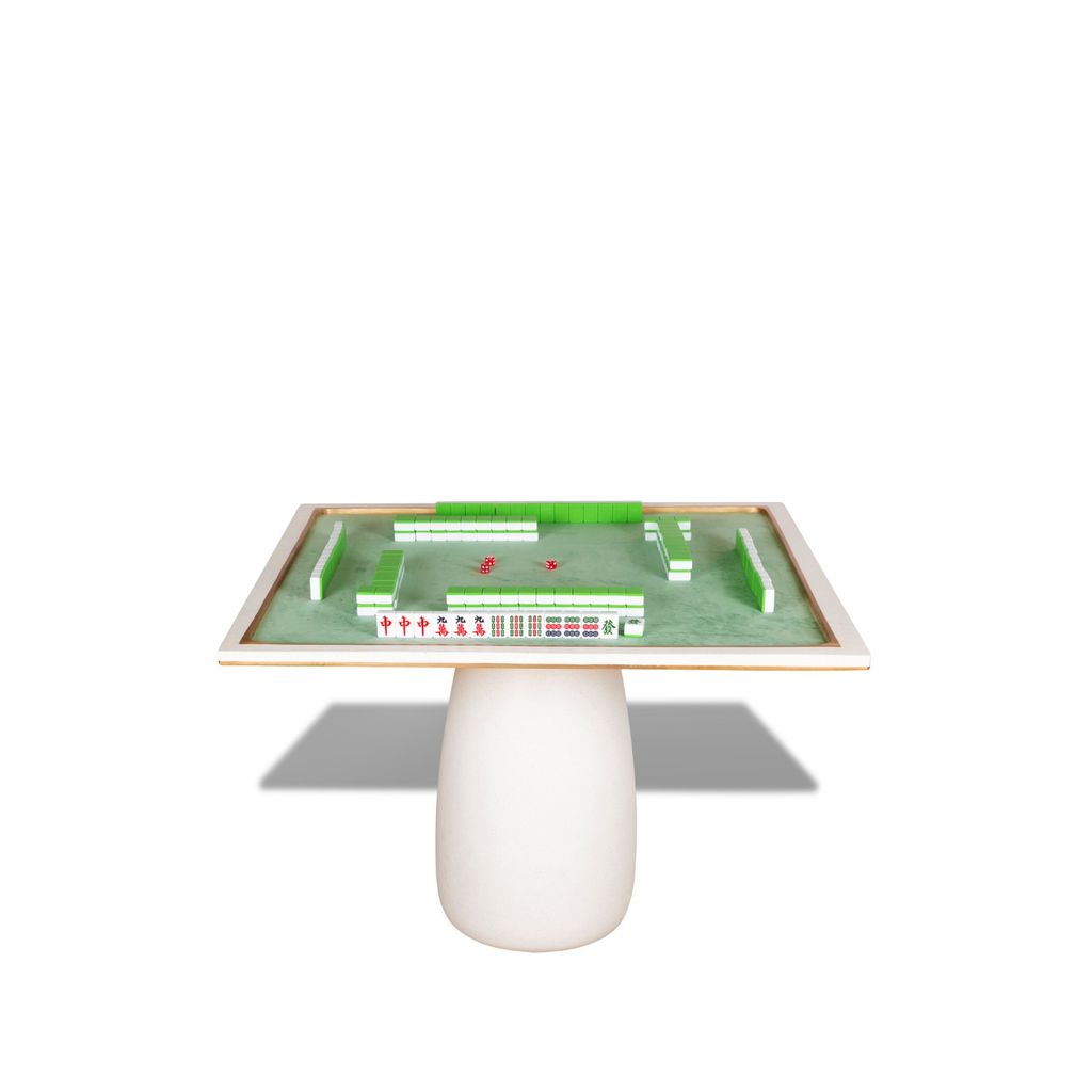 The newest addition to the James de Wulf gaming collection. Meeting the growing demand for four-player game tables, the Mahjong table serves players of cards and board game aficionados. The table is constructed of a solid concrete top and base. The top is decorated and strengthened with a double bronze perimeter and play area surround. Table center is covered in a rich, mint velvet.