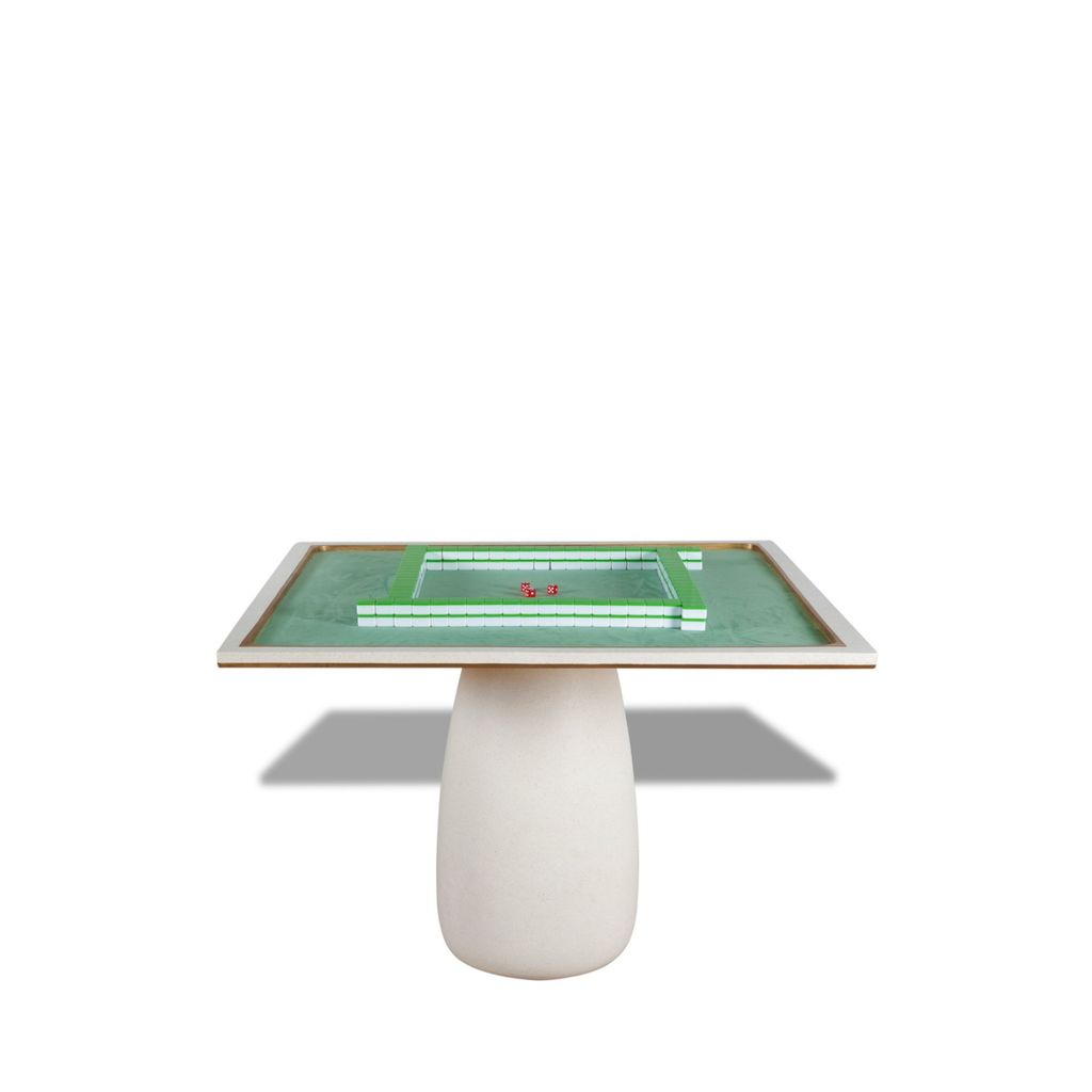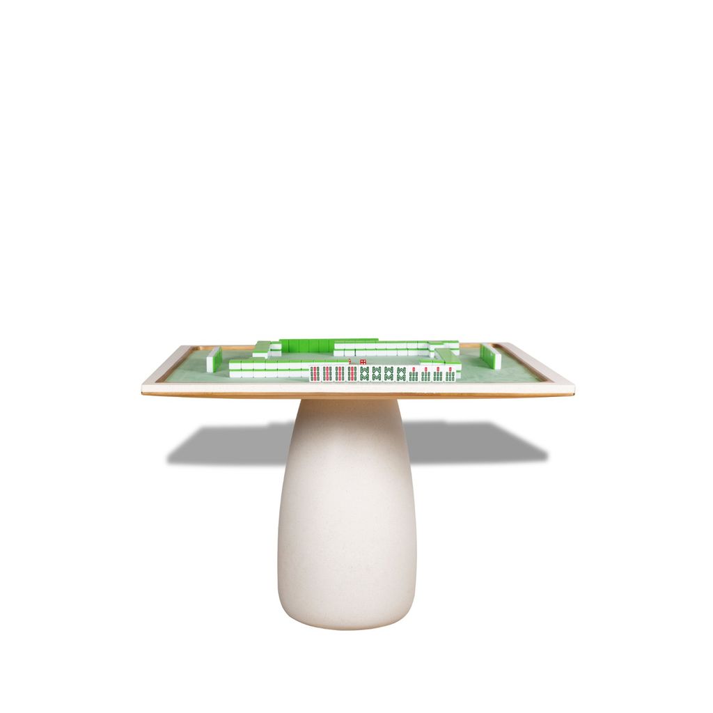"This is the ultimate table for playing Mahjong. The sunken playing area makes it so you never have to deal with tiles falling to the floor. There is a beautiful, soft felt for a nice glide of the tiles and a pleasing sound when shuffling. The corners of the sand casted bronze border are rounded so that tiles will move freely and not get stuck. The overall design is calming and smooth with a rounded base and soft tones. This gives it a gentle, feminine feel. However, it is made of solid bronze and concrete which has a masculine effect. Our hope with this table is to create an everlasting heirloom for your family to enjoy for generations to come." - JDW