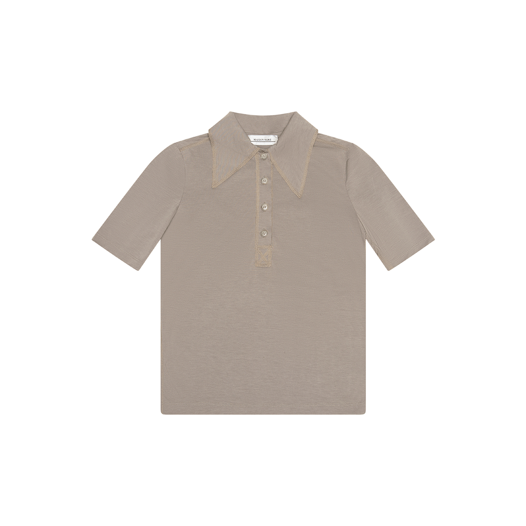 Maiden Name Polo features 4 button closure and quarter sleeve length.