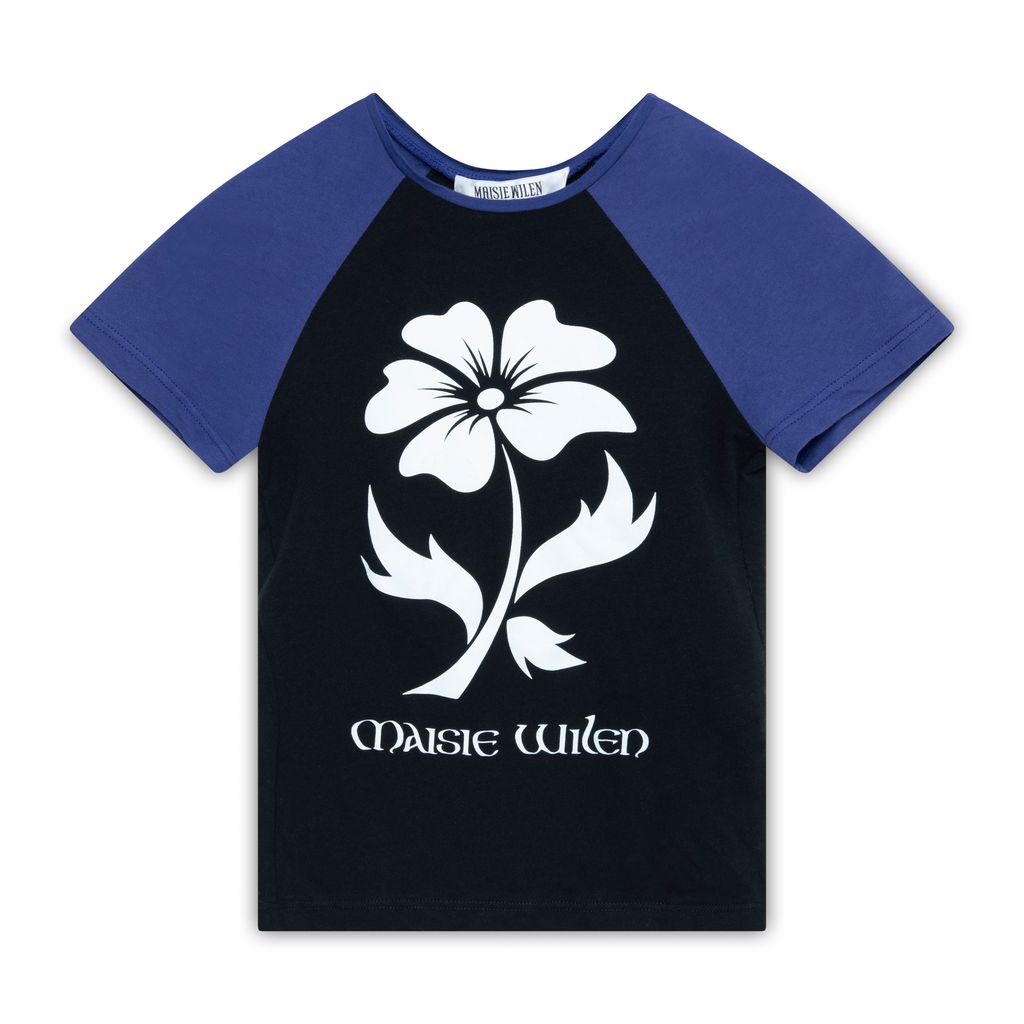 Maisie Wilen Slinky Tee in Black Midnight features brand logo on the chest with a large flower print.