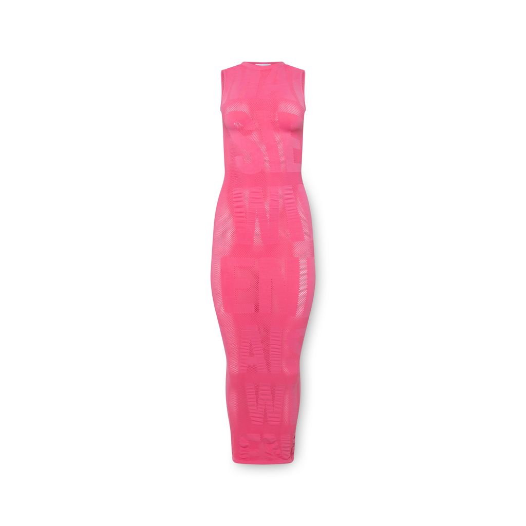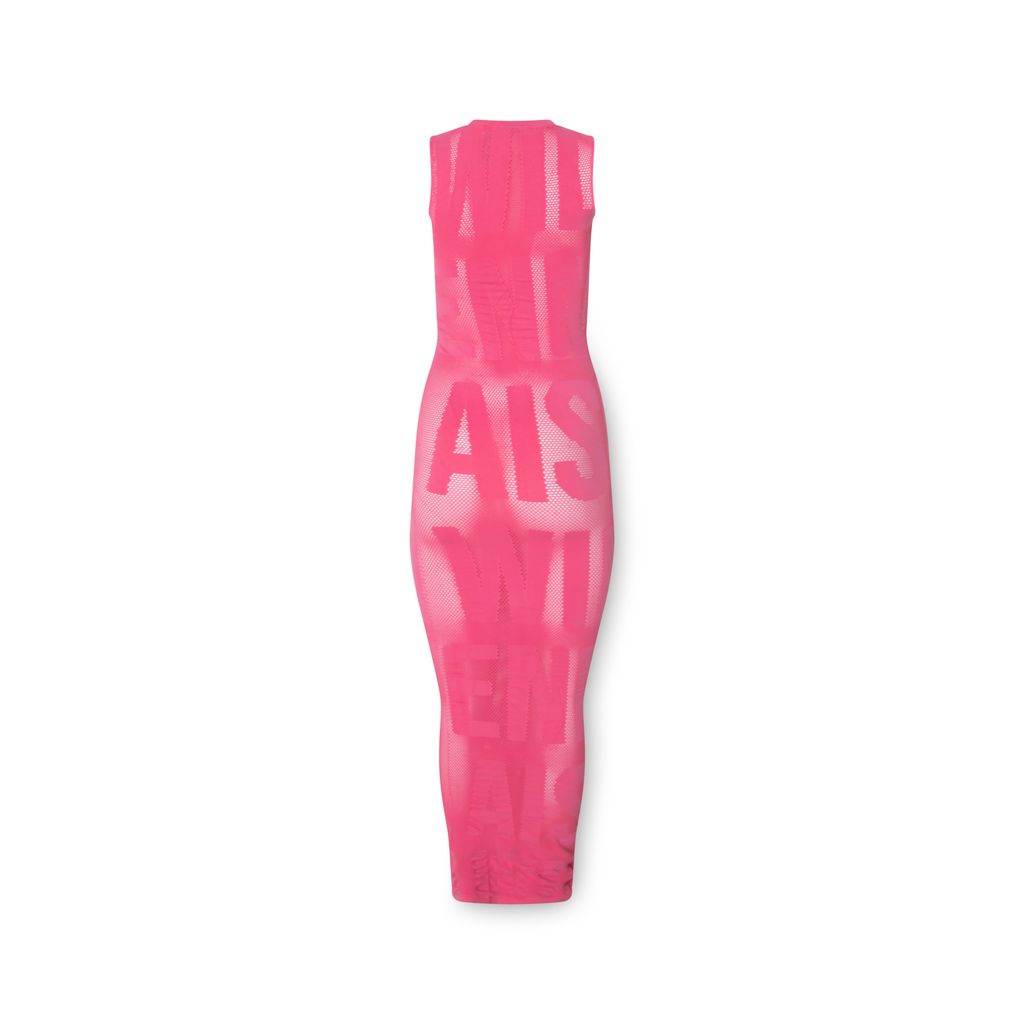 Maisie Wilen Logomania Dress features print reads MAISIE WILEN, sleeveless maxi dress with micro mesh knit, and seamless knit. One side fits all.