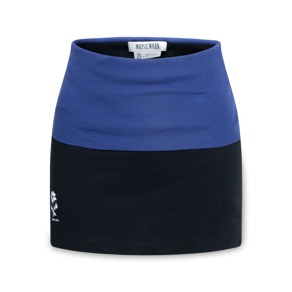 Maisie Wilen Pop Skirt in Midnight Black features rollover rib waistband and flower print.