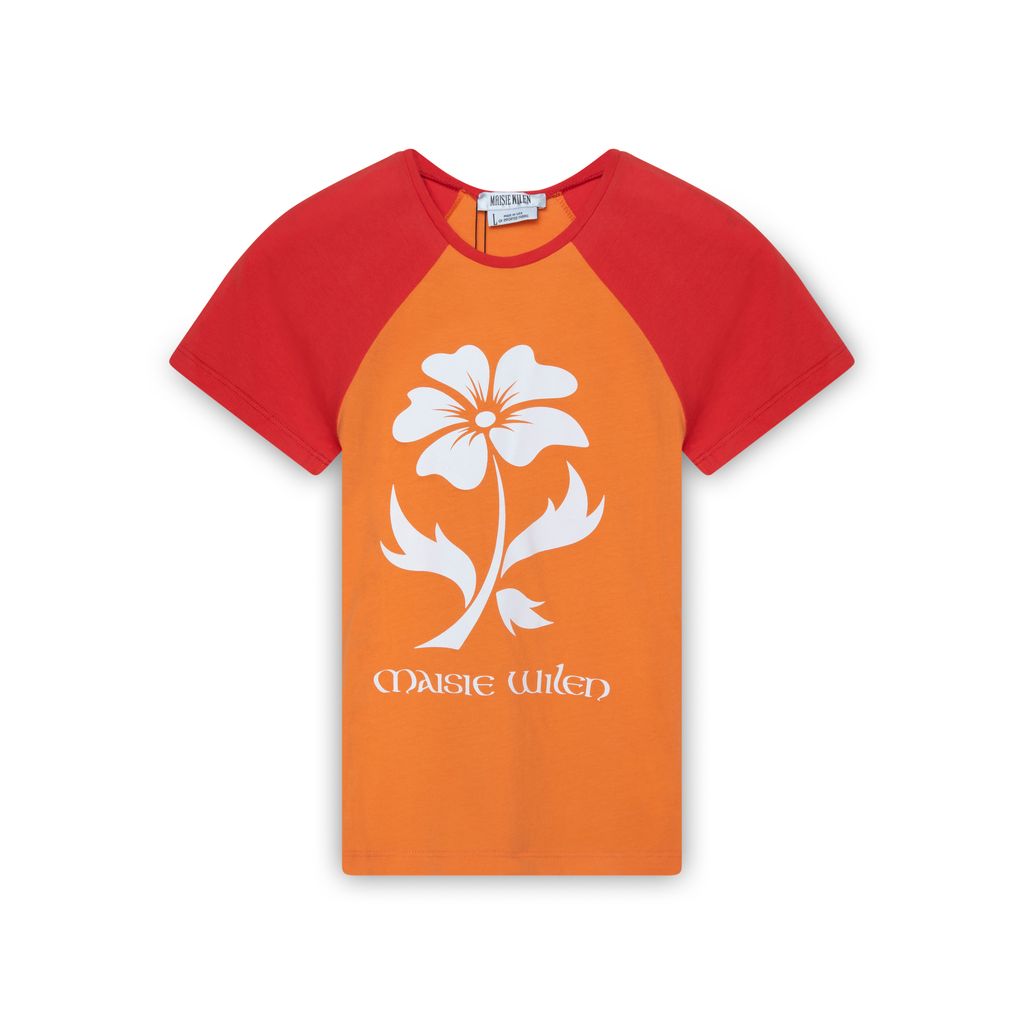 Maisie Wilen slinky shirt features raglan t-shirt with logo flower graphic, and stretch cotton jersey.