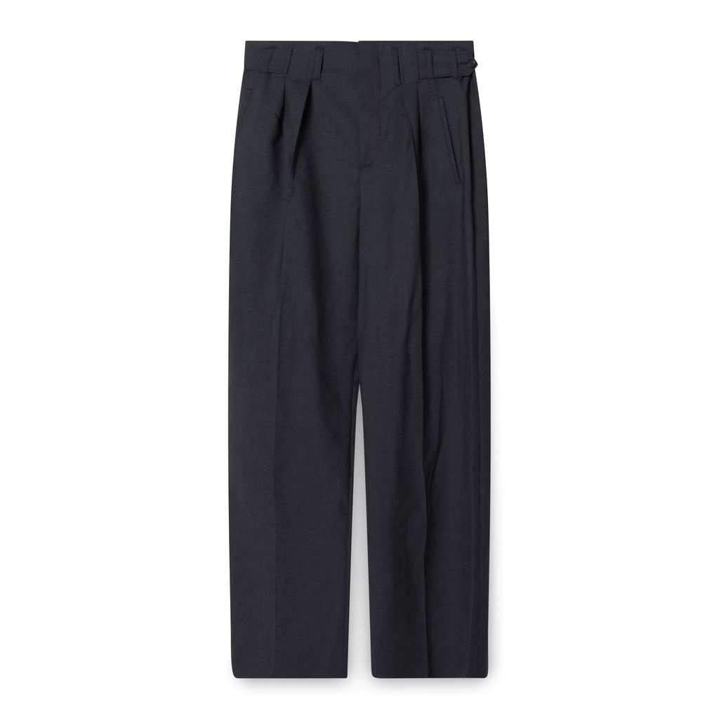 These classic wool trousers feature a hidden hook closure and a zipper.
