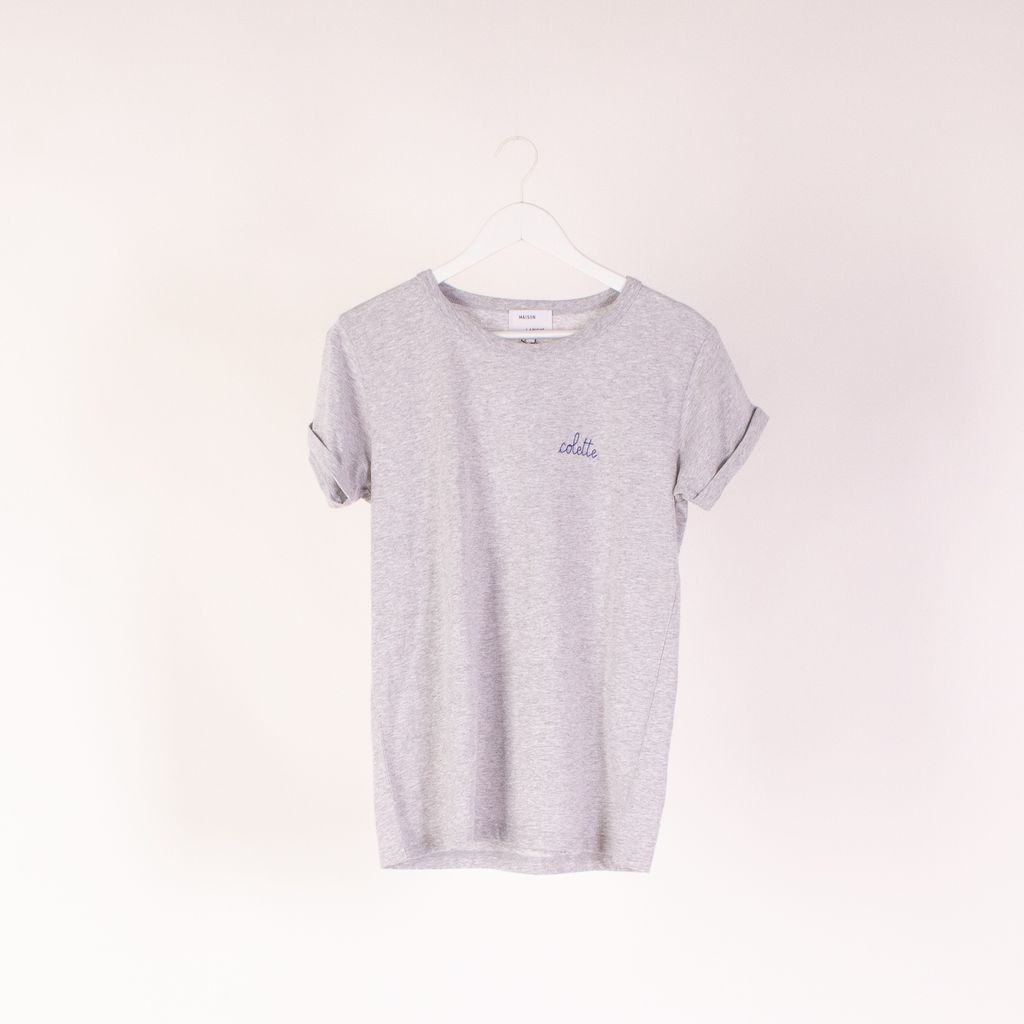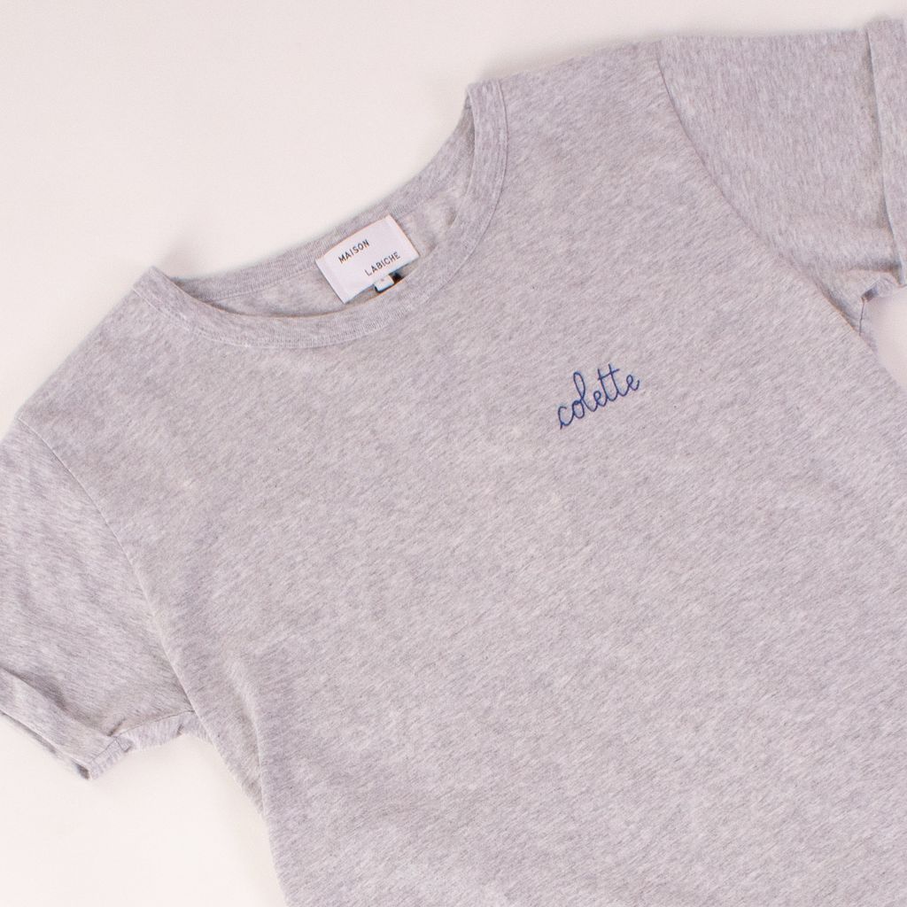 This shirt from Maison Labiche was created for the celebration and closing ceremony of iconic French retailer Colette. Features chain stitched "Colette" embroidery in Colette's signature blue as well as cuffed sleeves.