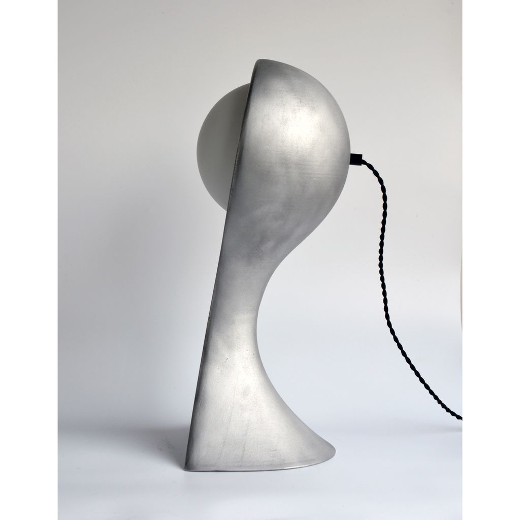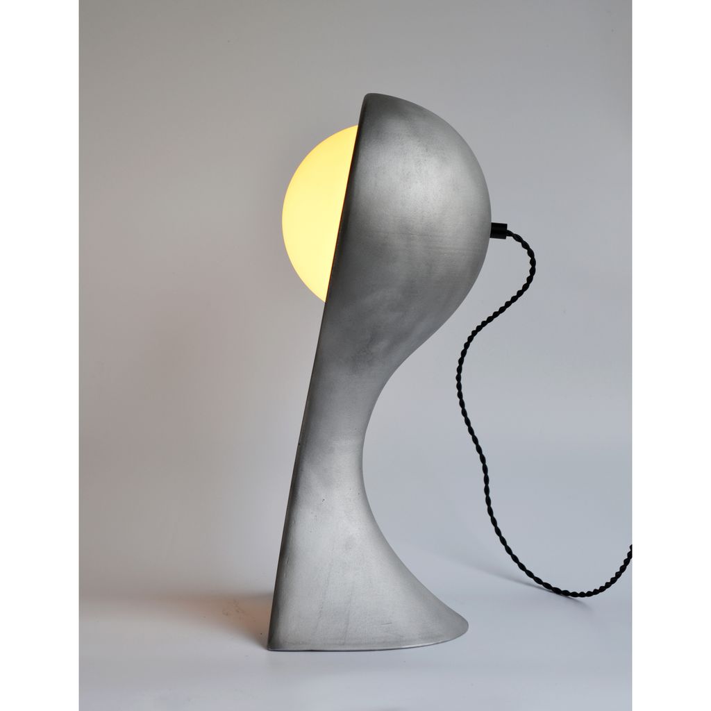 Inspired by Giorgio Morandi’s ghostly paintings of mannequin busts, this sculptural lamp is sand cast in aluminum. The exterior is left with the rough sand cast surface while the interior is polished. Please note: These lamps are cast in aluminum, blemishes and pitting are natural and celebrated characteristics of the material.