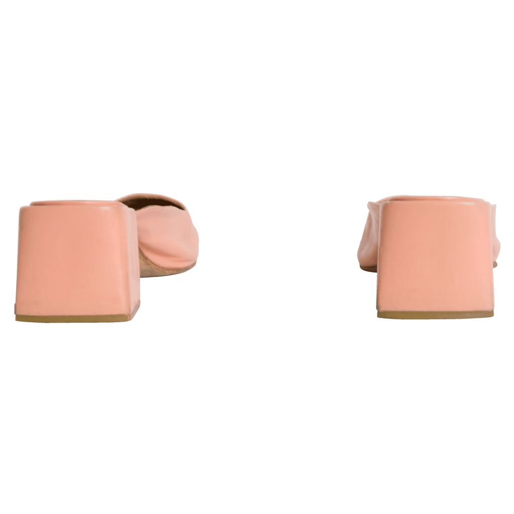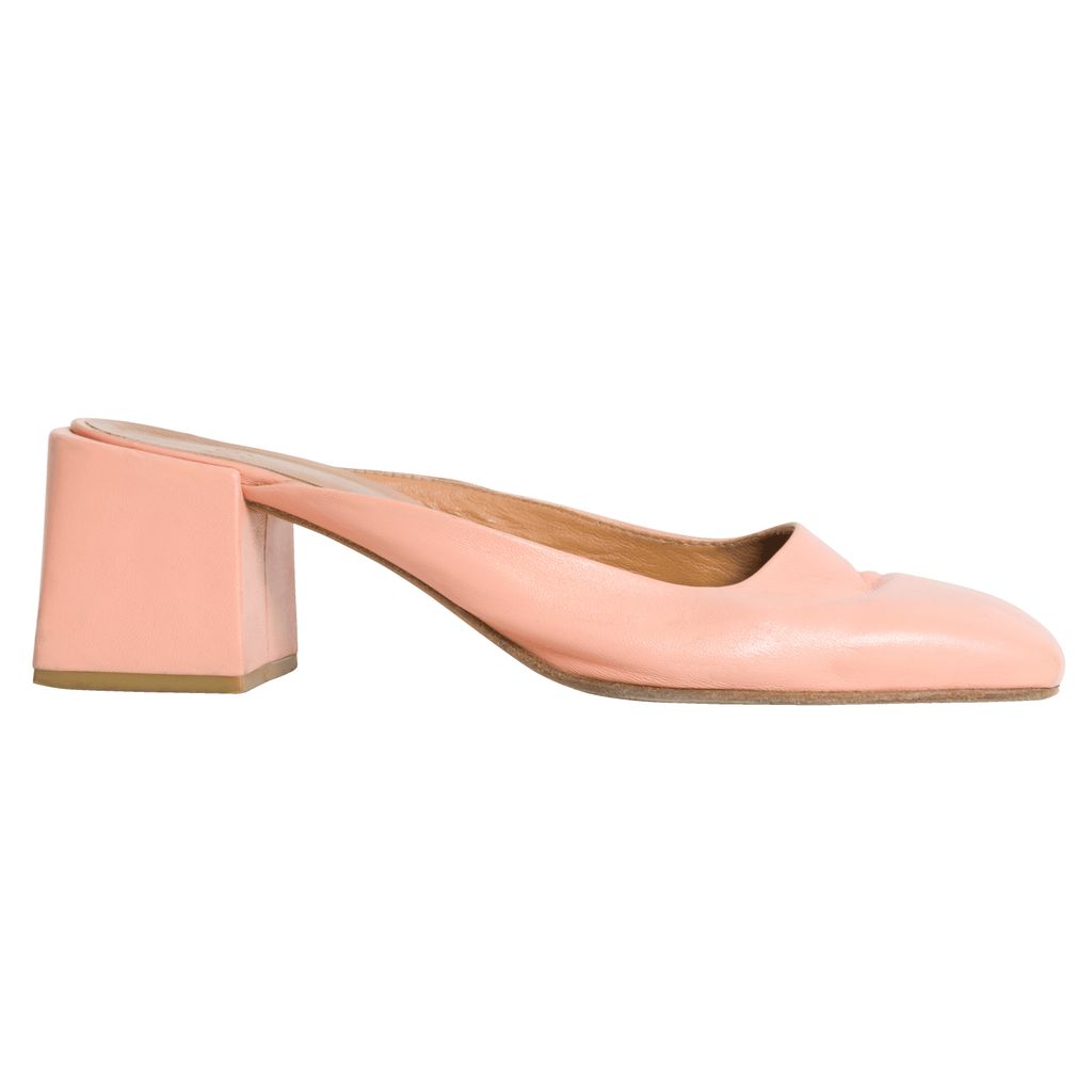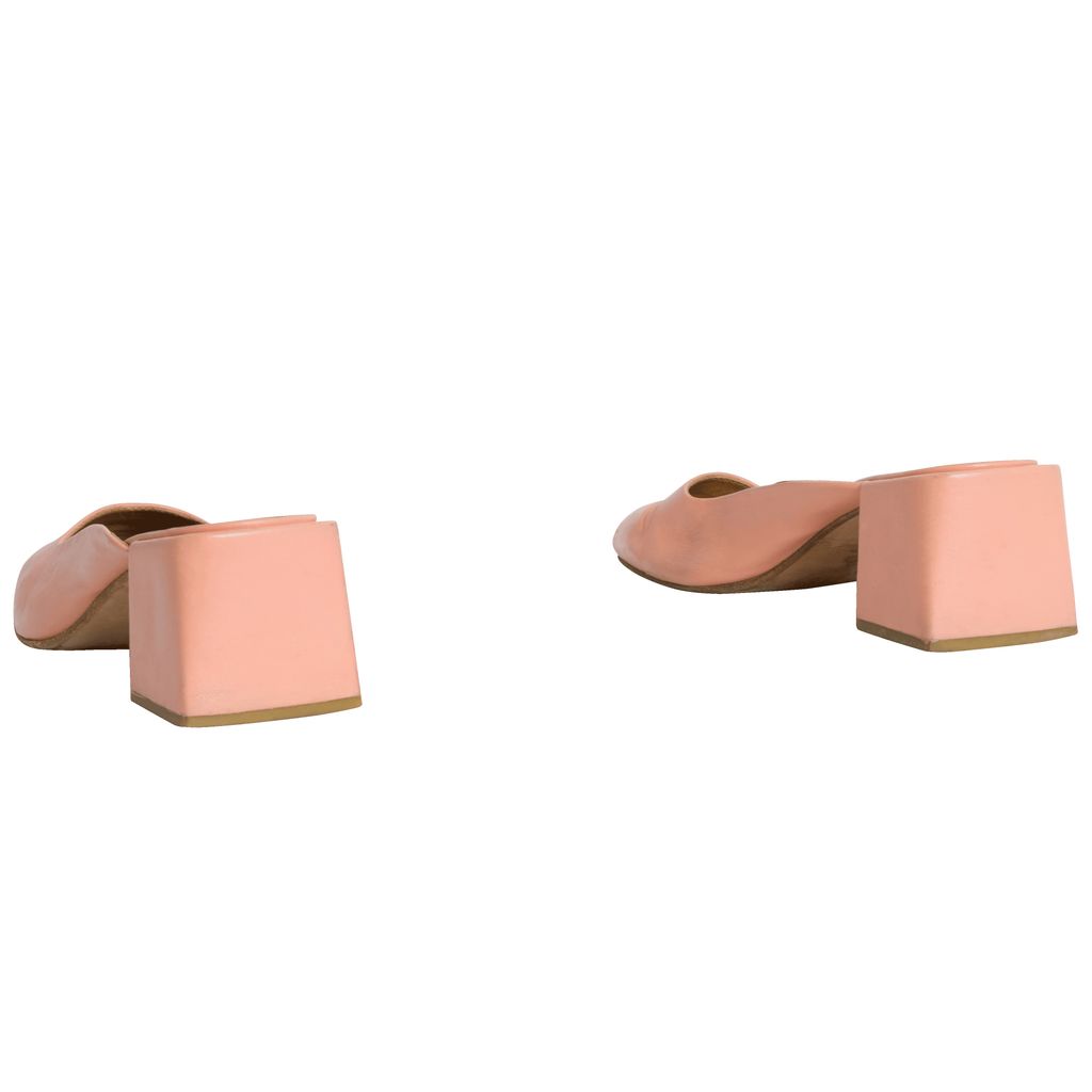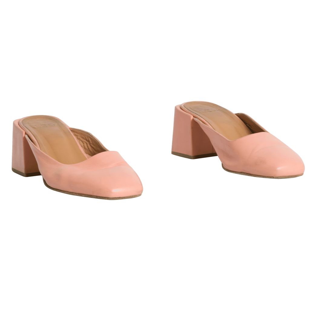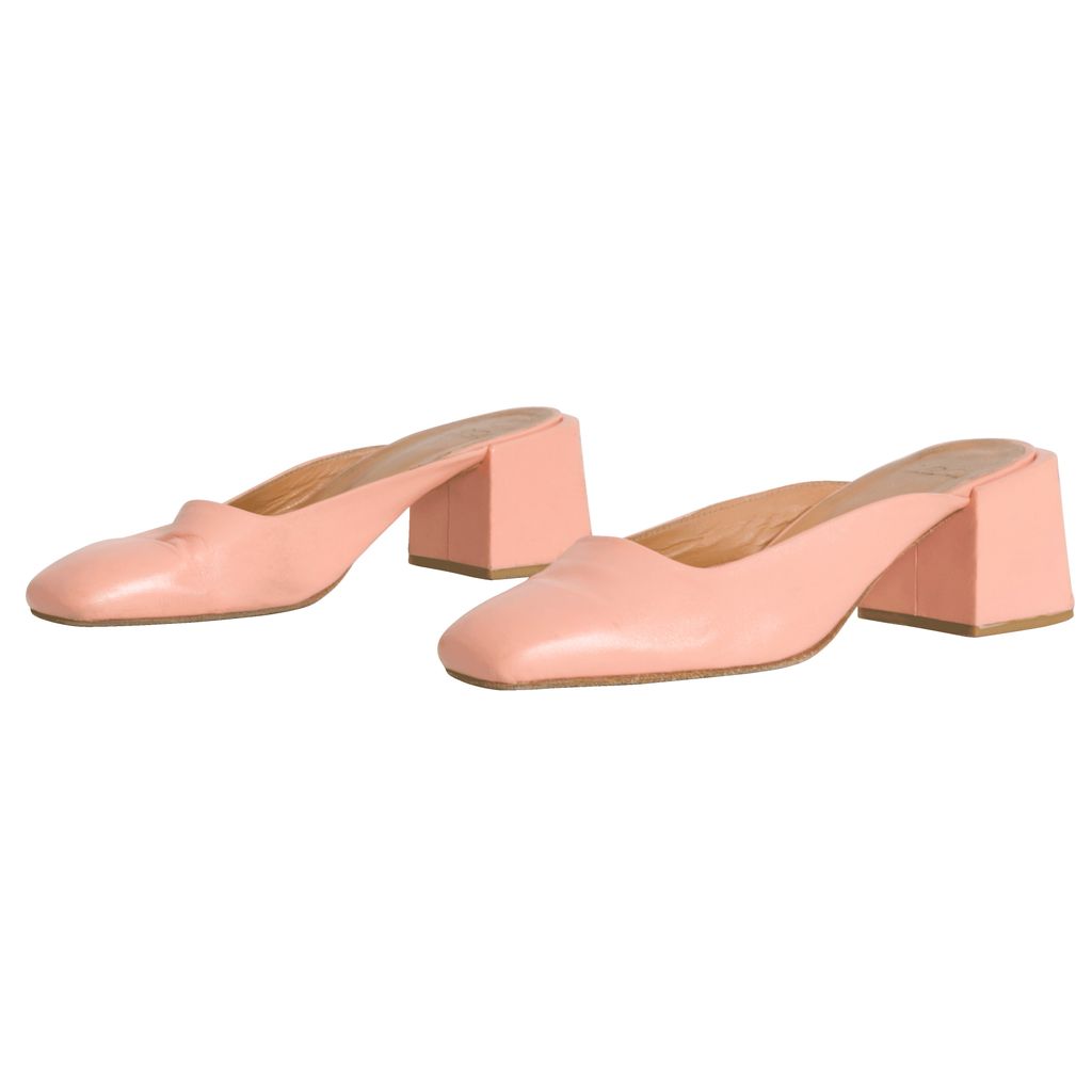 Pink suede mules. 1.75 inch heels. Please note mild discoloration.