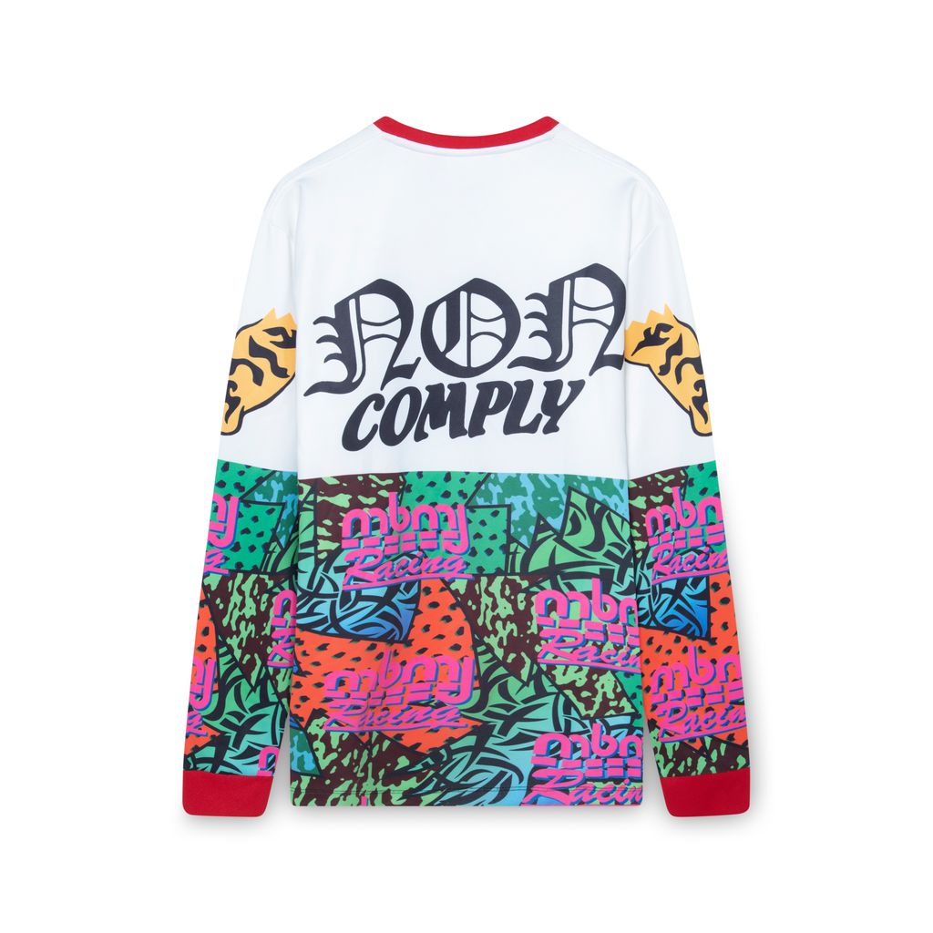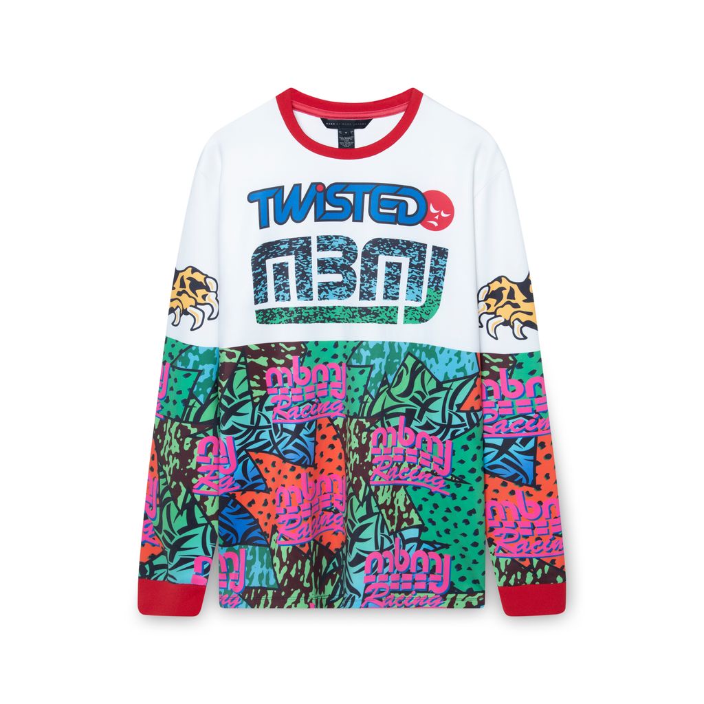 Marc Jacobs Twisted MBMJ Racing Long Sleeve feature ribbed collar, ribbed cuffs, and all over printed graphic