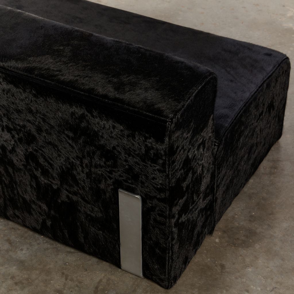 With is its minimalist form, the Marcel sofa is a design classic, featuring exposed aluminium brackets and has been reupholstered in sustainably sourced hair on hide. Designed by Kazuhide Takahama as part of his long standing collaboration with Dino Gavina, the sofa was named in tribute to Gavina's good friend Marcel Duchamp. Designer: Kazuhide Takahama Manufacturer: Gavina Model: Marcel Material: Cow Hide, aluminium, foam, innerliner. Year: 1965 Origin: Italy Dimensions: H65 x W152cm x D88 cm Condition: Excellent condition with new foam and innerliner. Reupholstered in sustainably sourced hair on hide.
