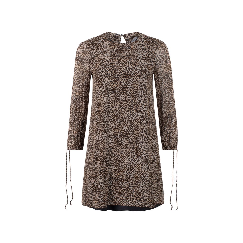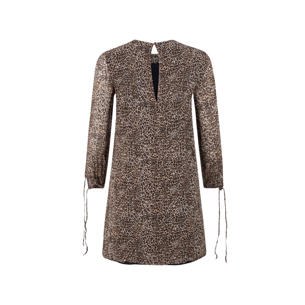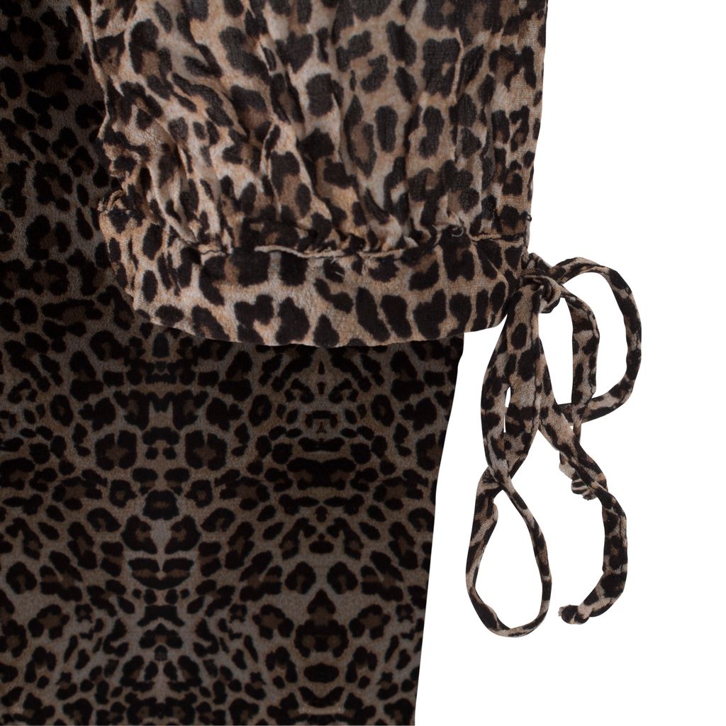 This leopard print tunic style dress from Marella is incredibly lightweight and easy to wear. Made from airy animal print fabric, this dress has a simple round-cut neckline, long tie-cuff sleeves, a back keyhole closure, and is fully lined. Pair with a leather jacket for a night out or your favorite sneakers for a daytime outfit. Gently worn in excellent condition.
