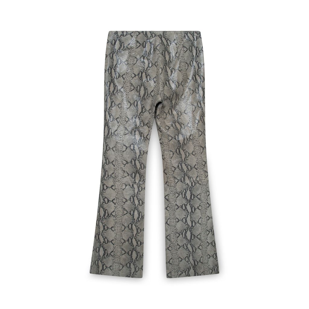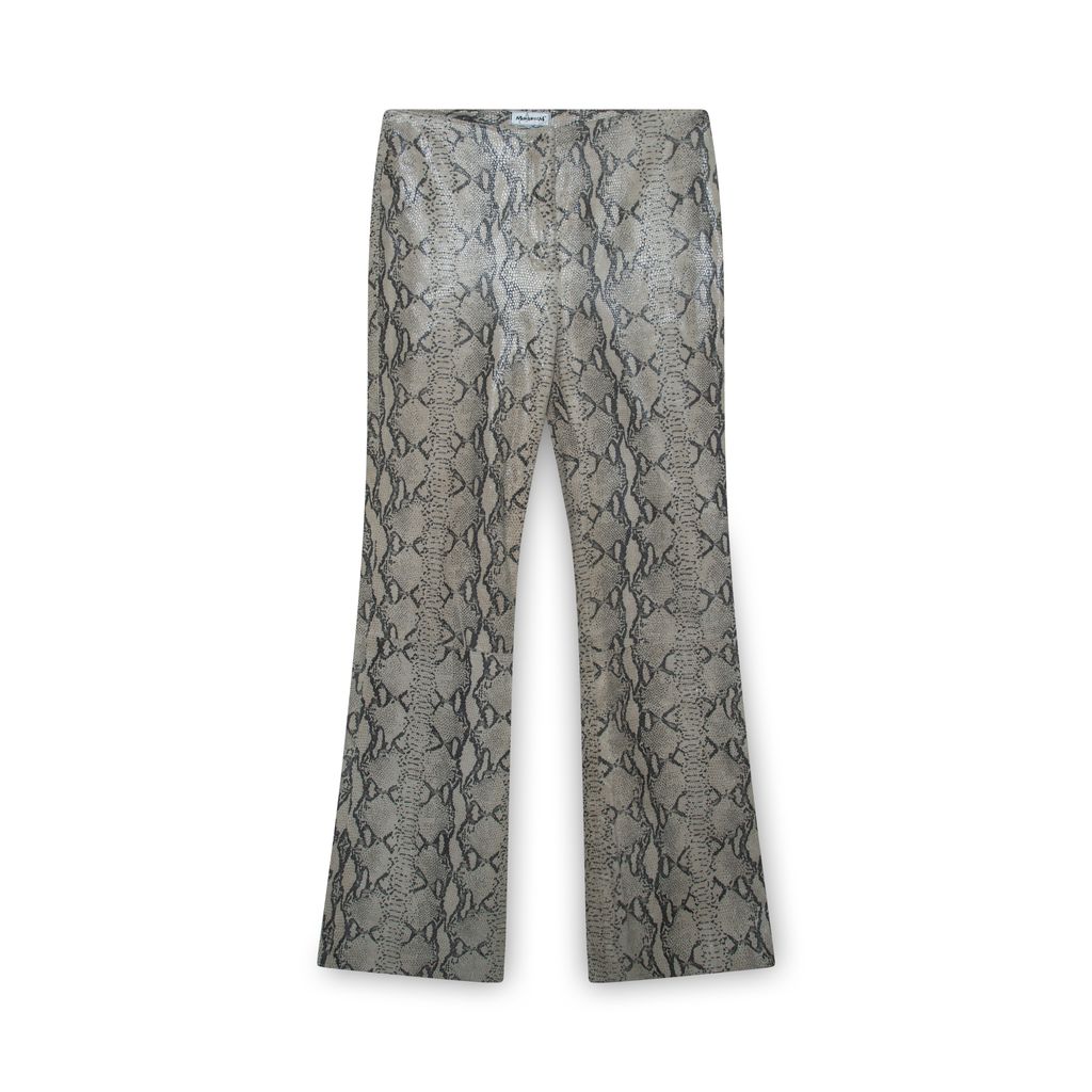 Margaret M Beige Snakeskin Trousers features zip up closure, slightly flared fit, and mid rise.