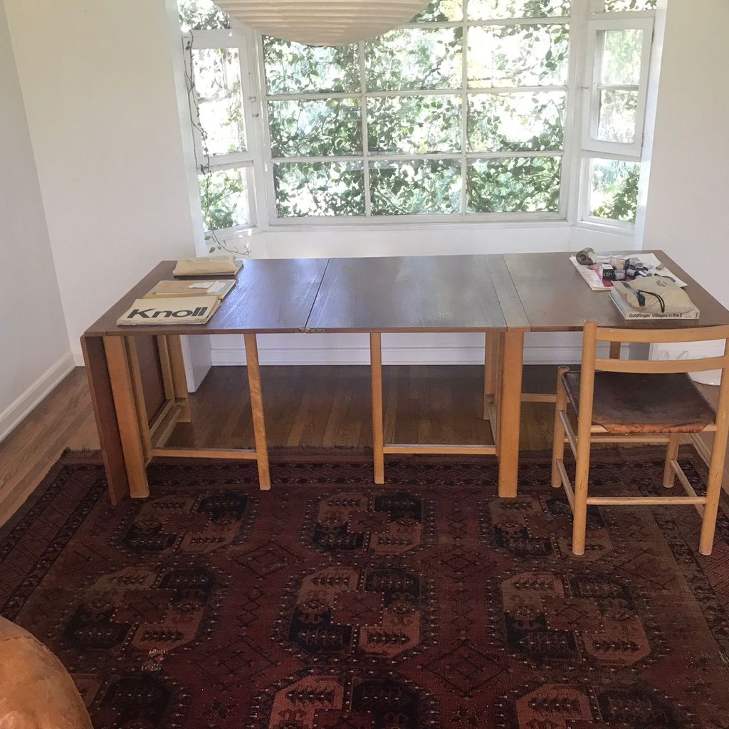 Bruno Mathsson 'Maria' Mid-Century Folding Leaf Dining Table is a large dining table fit to accommodate large dinner parties as well as everyday dining in smaller spaces. Rich walnut woodgrain and a versatile Mid-Century Modern design make this table a great investment for any dining room.