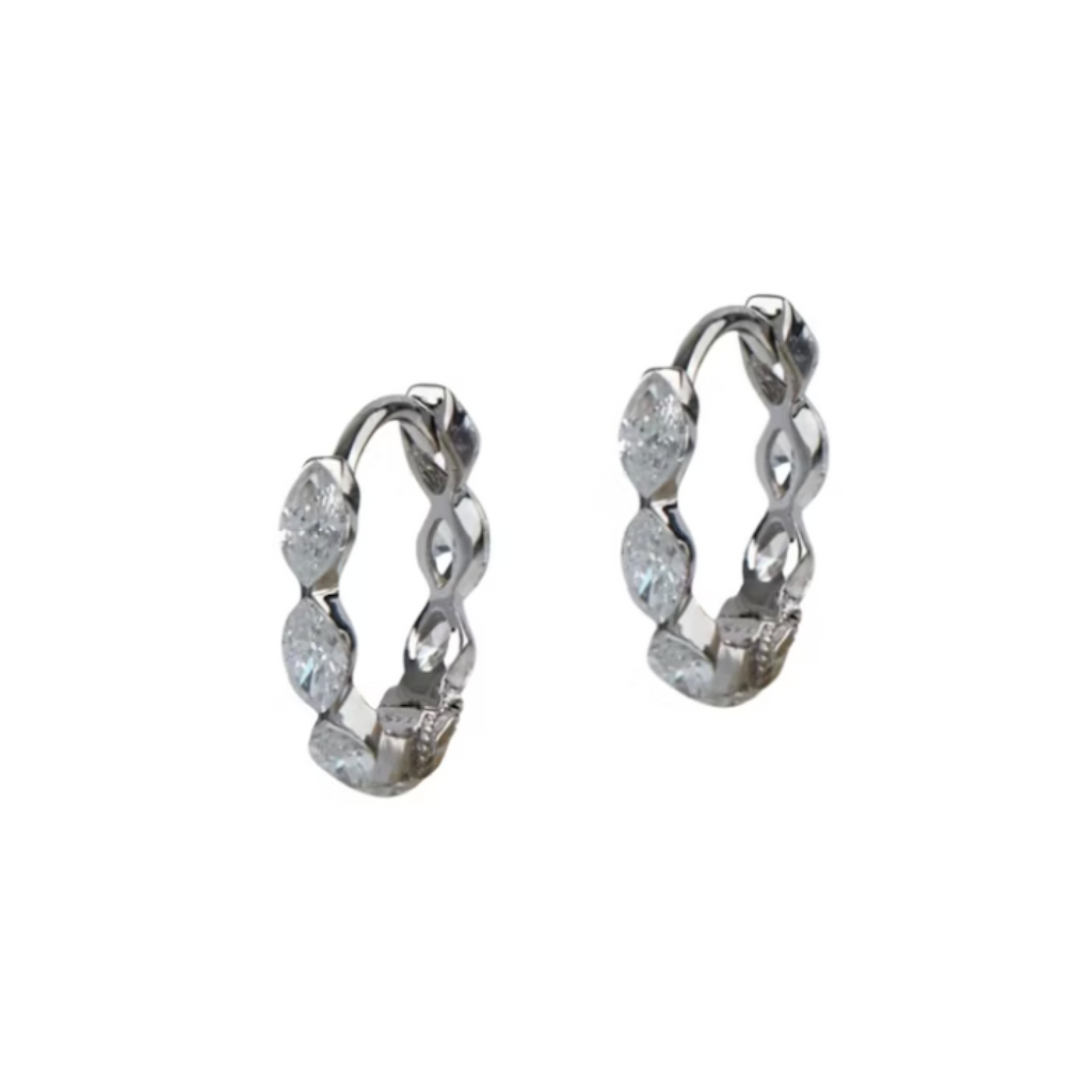 With a stunning sparkle , add this 18k white gold Maria Tash marquise diamond eternity huggie earring to your multi-pierced earlobe for an edgy , modern vibe. A row of invisible-set marquise diamonds gives this click closure hoop an antique , regal look. Interior diameter is 8mm , width is 3mm , and the marquise diamonds are 3mm x 1.5mm and weigh .25ctw. **Sold as a Pair**