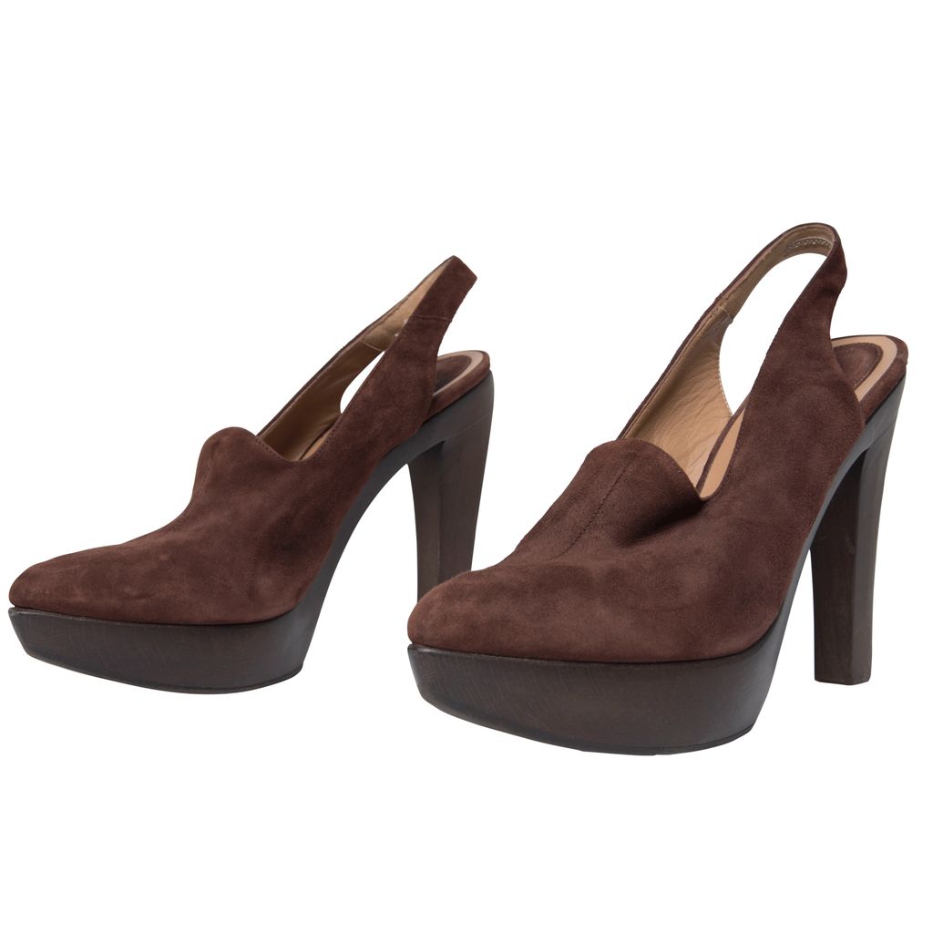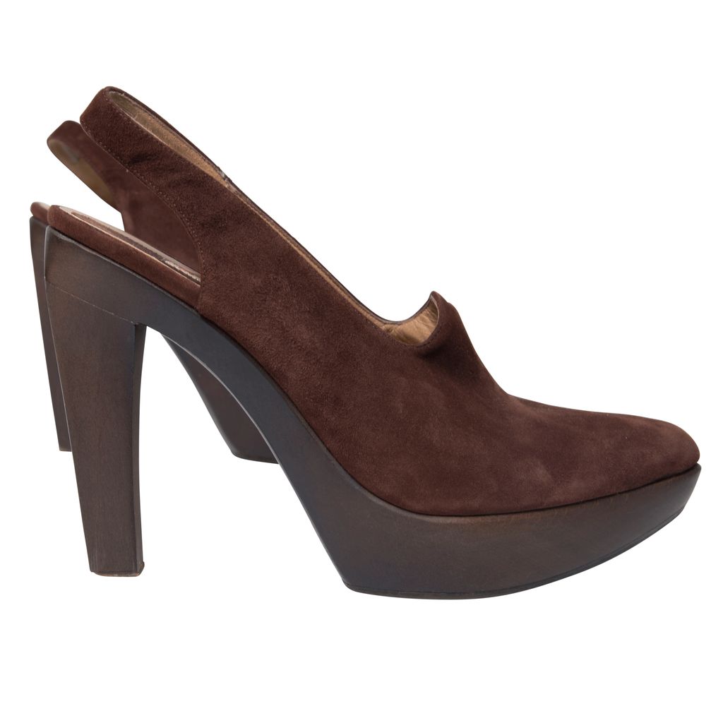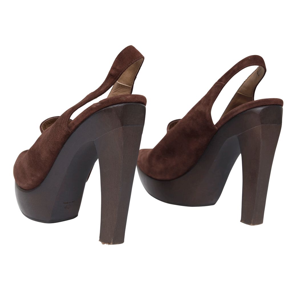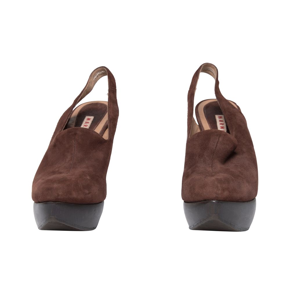 Marni brown suede slingback pumps feature a wooden platform sole.