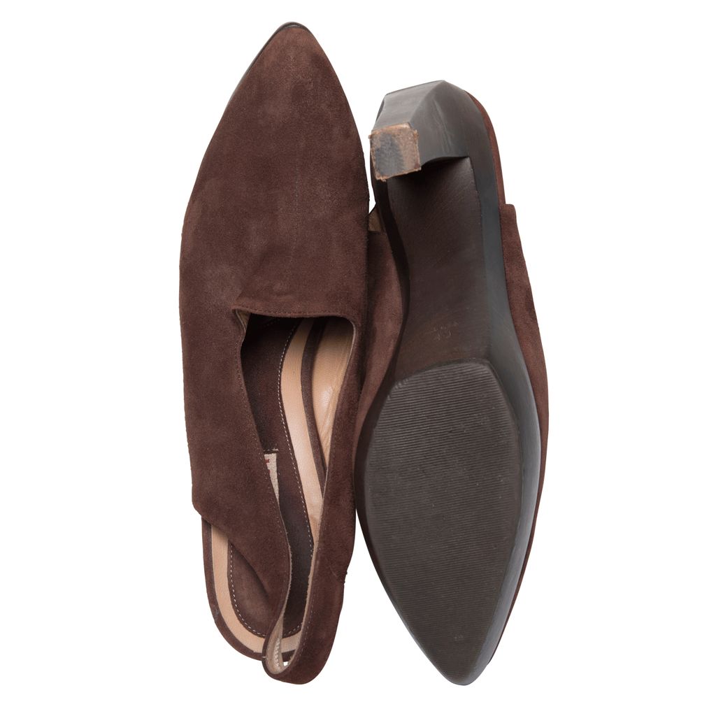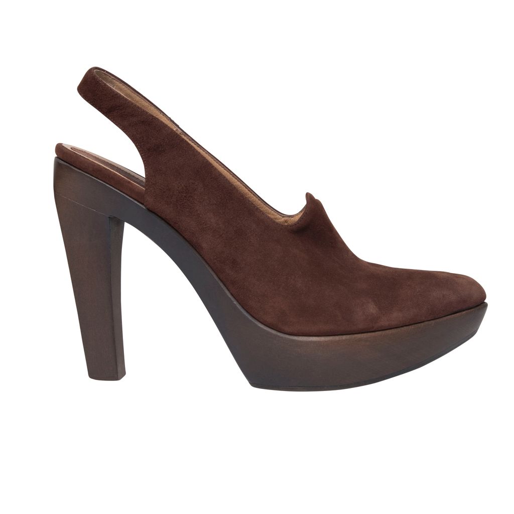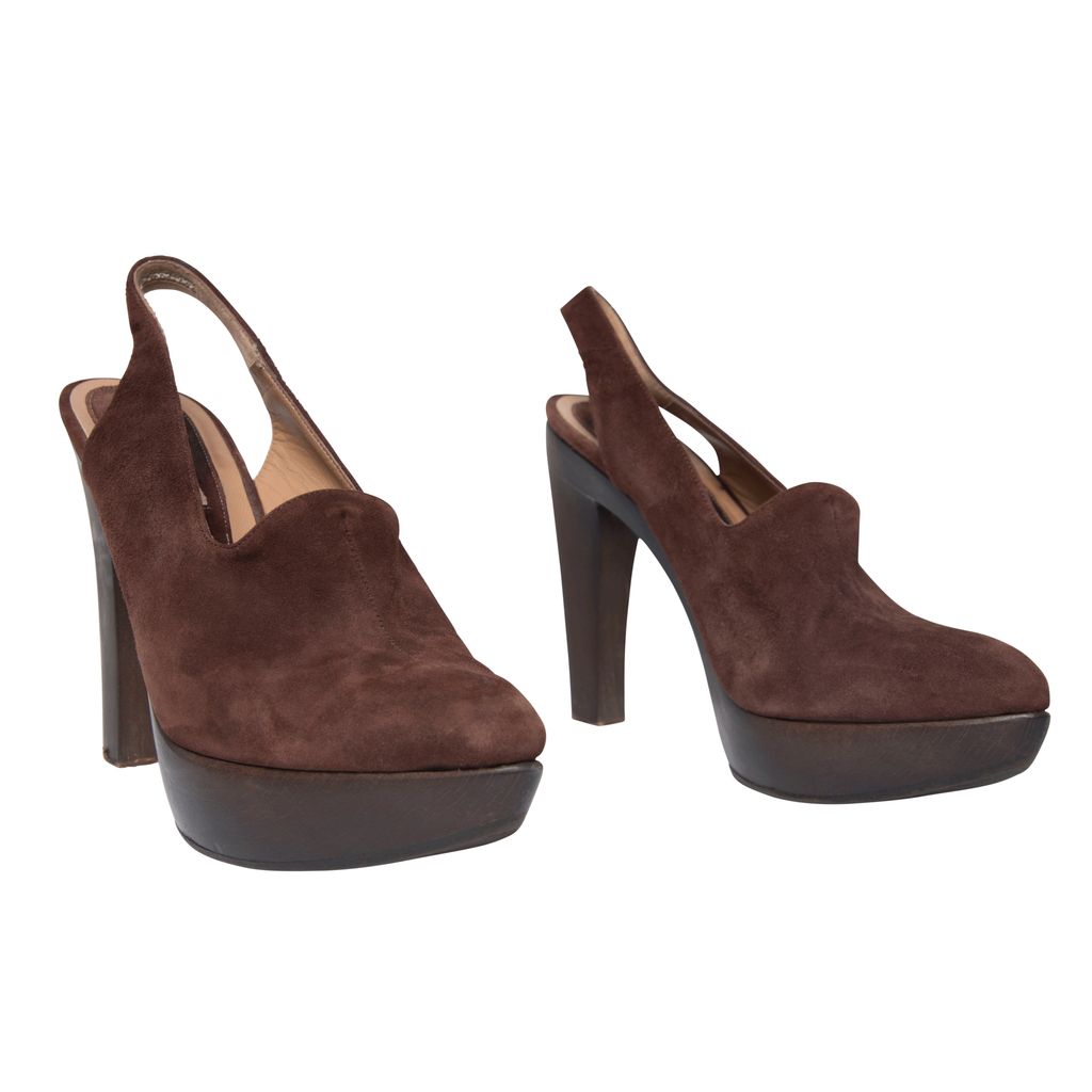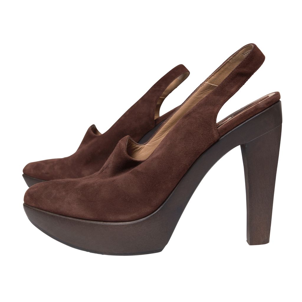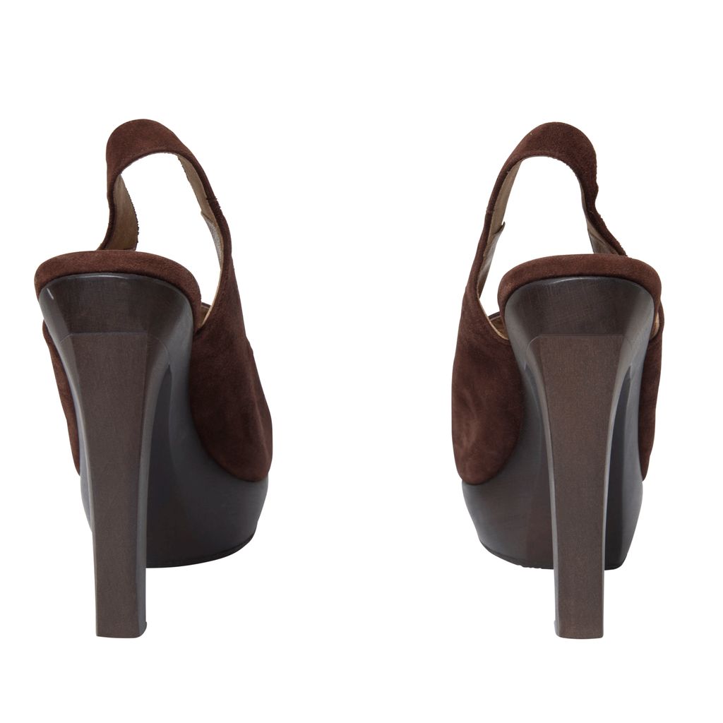 Marni brown suede slingback pumps feature a wooden platform sole.