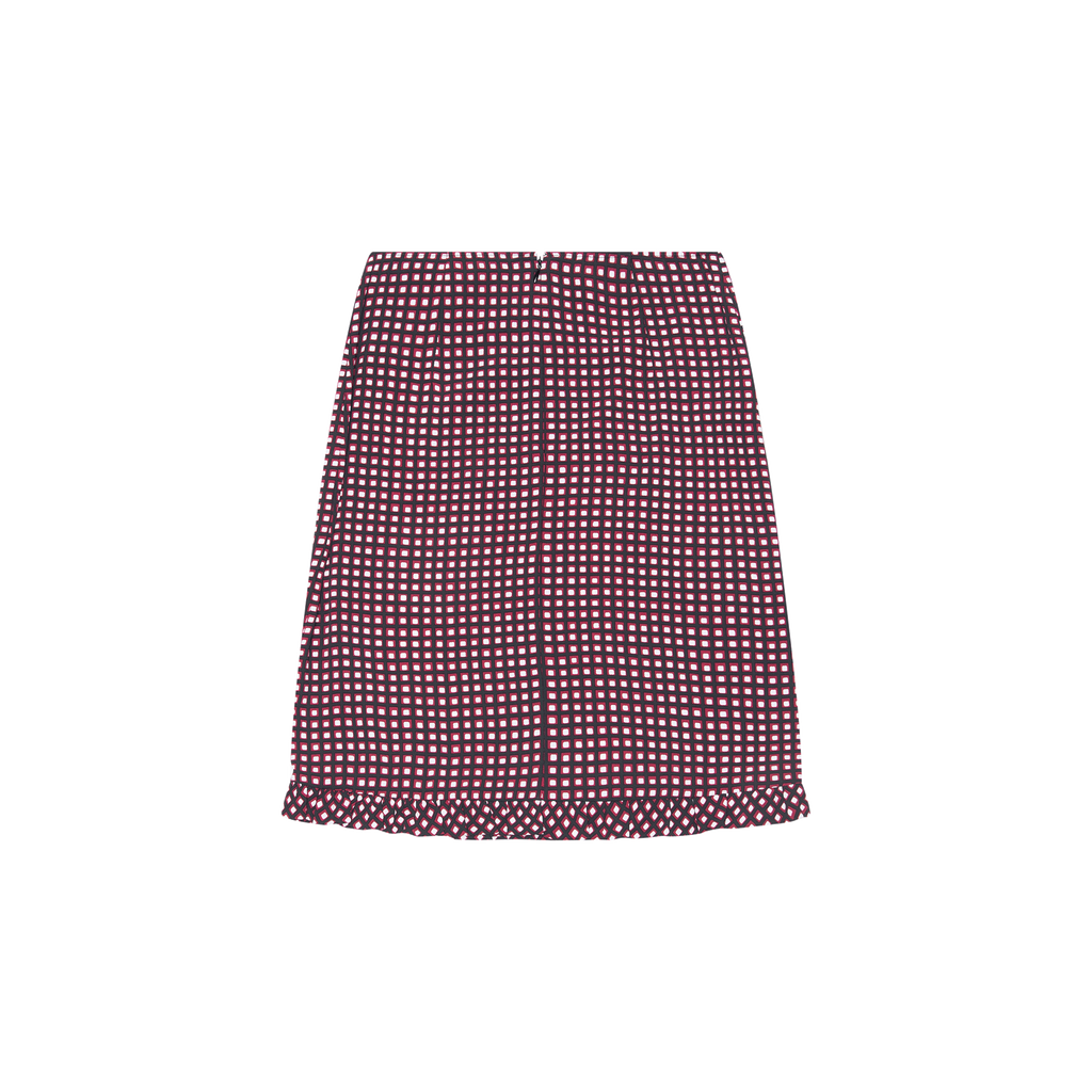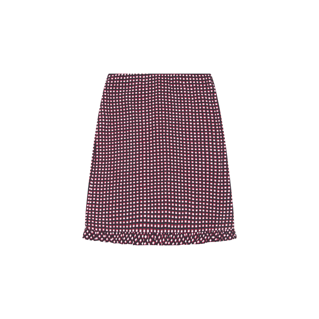 Marni Fall Edition 2012 Checkered Skirt features black, red, and white checkered pattern, hidden back zipper, midi length, and ruffled hem.