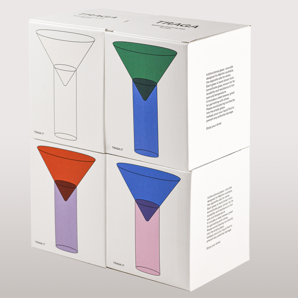 TRAGA is a Milanese design brand creating colorful glassware that is multipurpose and informal. Our debut product, the 'Martini Shot Glass,' uniquely combines multi-functionality with inspiration from brutalism. Crafted from durable and temperature-resistant borosilicate glass, it is one of the most sustainable types of glass and it can be remelted endlessly.