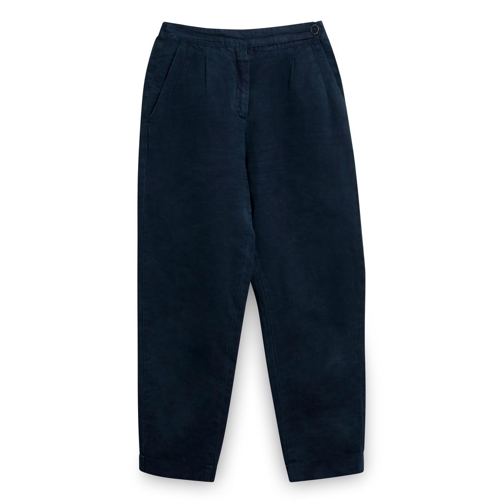 These mid-rise cropped trousers from Massimo Alba are made from a linen-cotton blend and feature double darts, turn-up hems, zip fly with double button closures, 4-pocket style, and elasticized back waist. In good condition.
