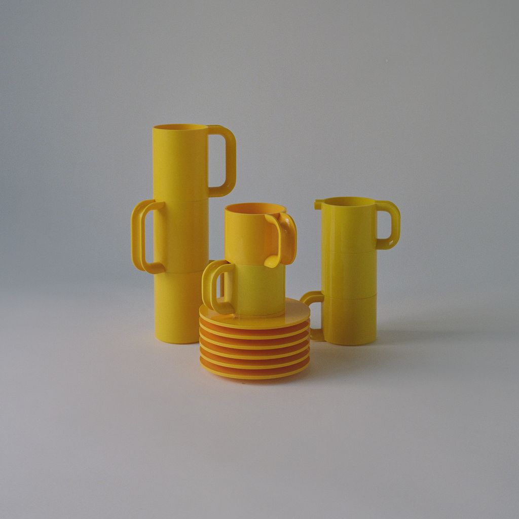 Massimo Vignelli for Heller Yellow Modernist Stackable Coffee and Tea Set - Twenty Pieces
