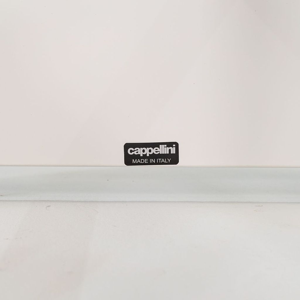 These are Fronzoni '64 Chairs, initially designed by AG Fronzoni in 1964. These examples date to 2022 and were produced by Cappellini in Italy. The listed price includes one chair, and we have three available for purchase. Their frames are constructed of square tubular steel, and their seats are made of lacquered wood. As noted, three (3) chairs are available, and the listed price includes one (1) chair.