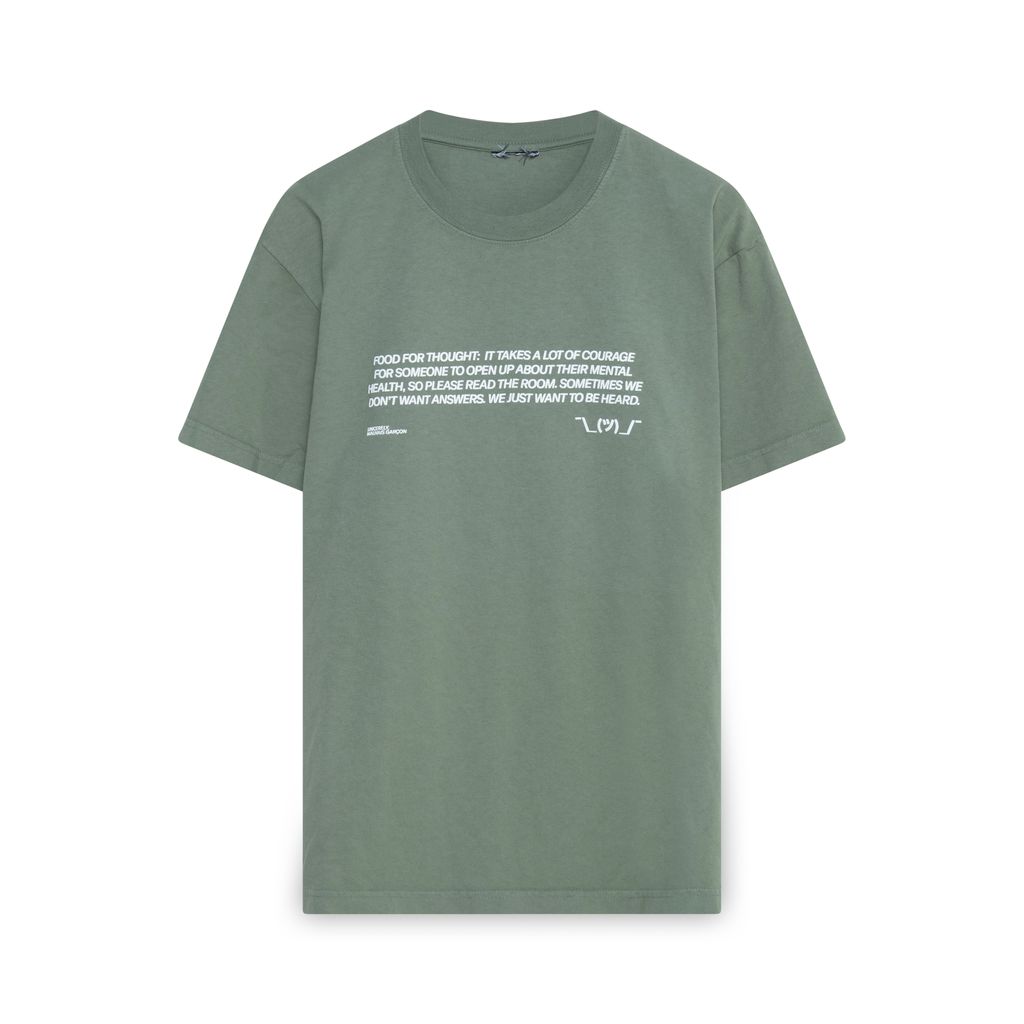 Mauvais Garcon Food for Thought t-shirt features graphics at front, and printed on factory seconds to give new life to these garments. Made in USA.