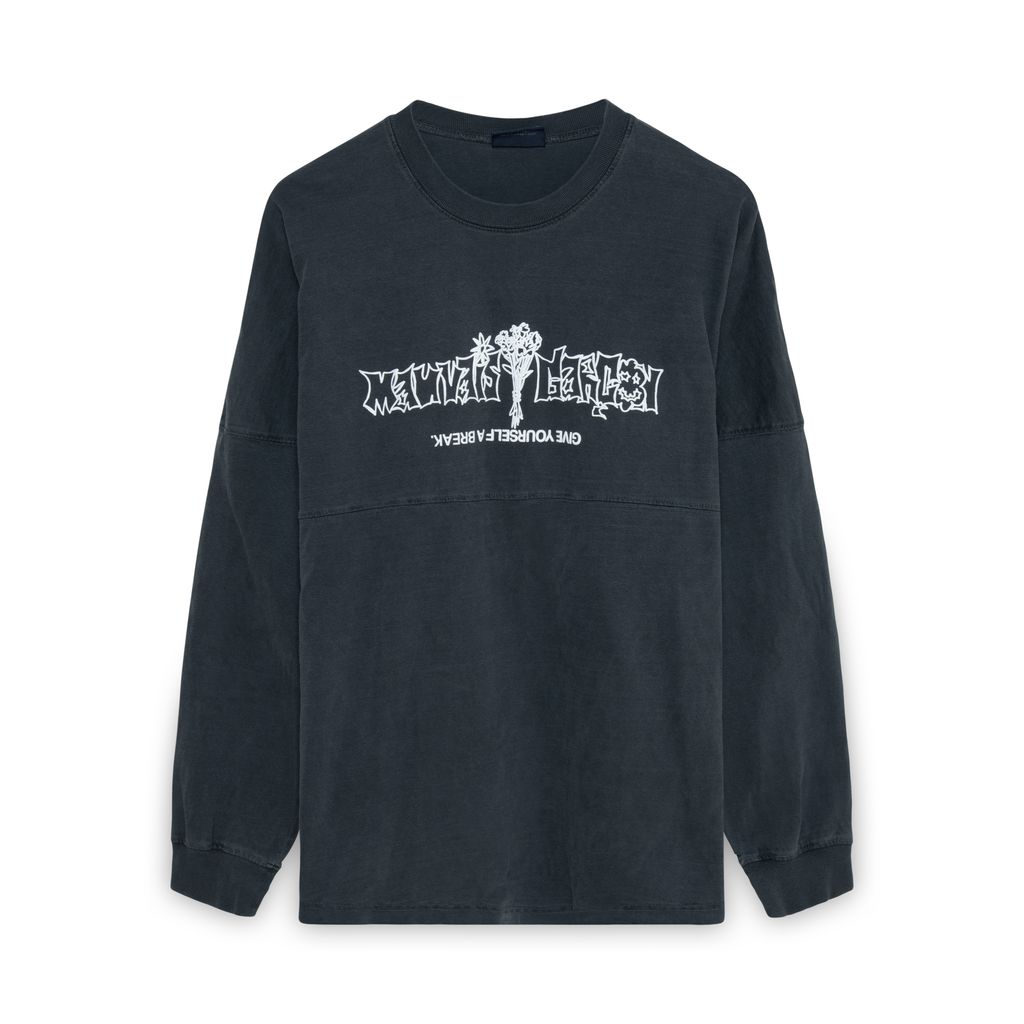 Mauvais Garcon Give Yourself a Break Long Sleeve t-shirt features graphics at front, and printed on factory seconds to give new life to these garments. Made in USA.