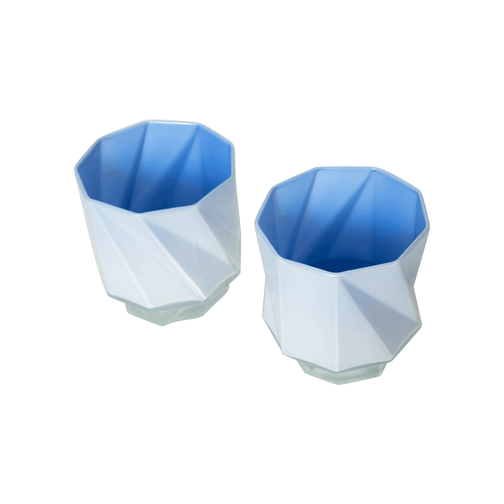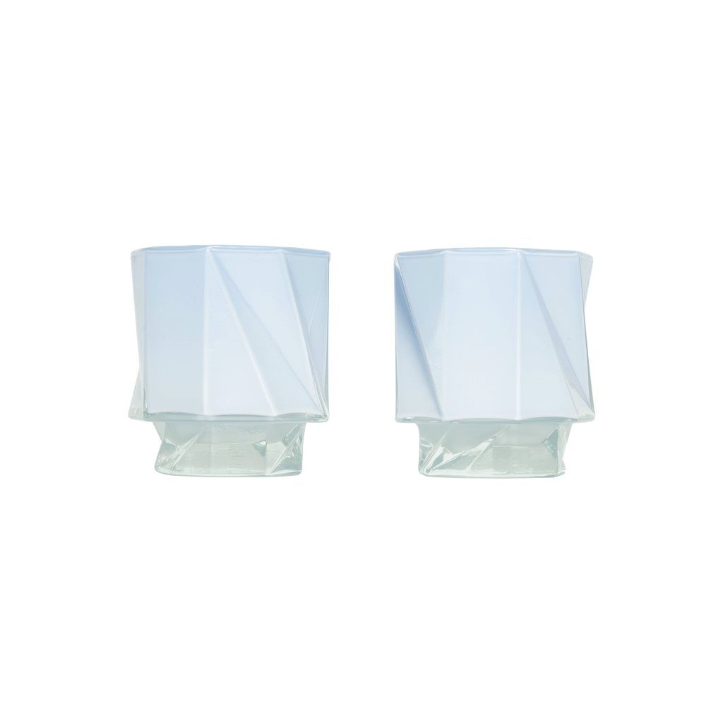 Max ID NY Exclusive Set of Two Ghost Tumbler Glasses features signature hand-blown twist-faceted glass to perfectly mimic the deep blue glow of an iceberg and its ever changing character.