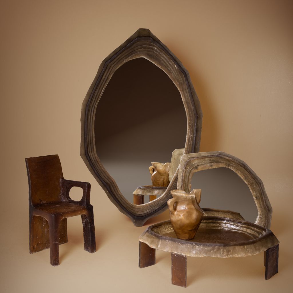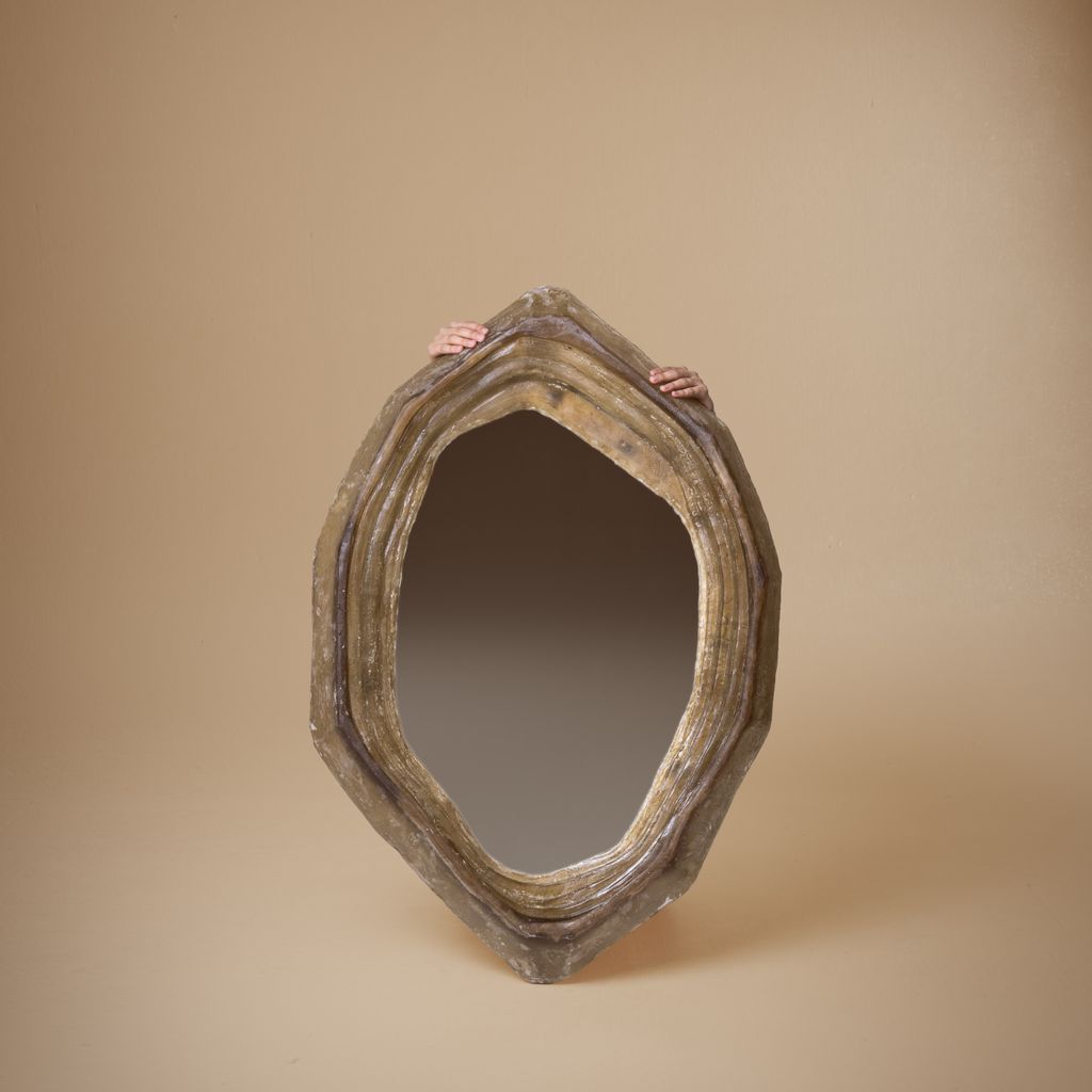 A more intimate scale of the same sculptural language as MC I - Mirror I. MC II - Mirror II retains the tectonic irregularity and mineral presence of its larger counterpart — a contemplative fragment.