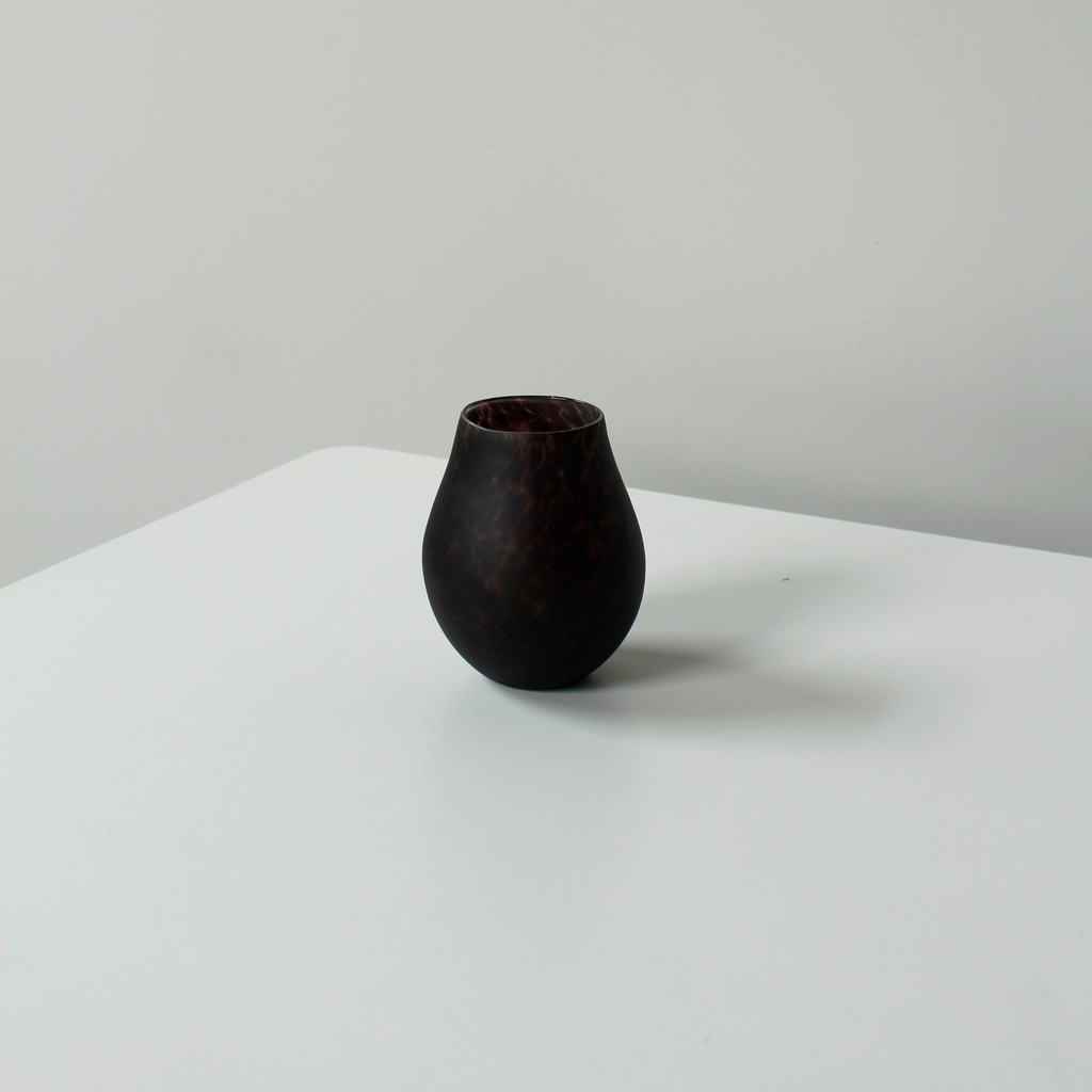 Medium handblown glass vase in speckled Chocolate. Opaque frosted finish.