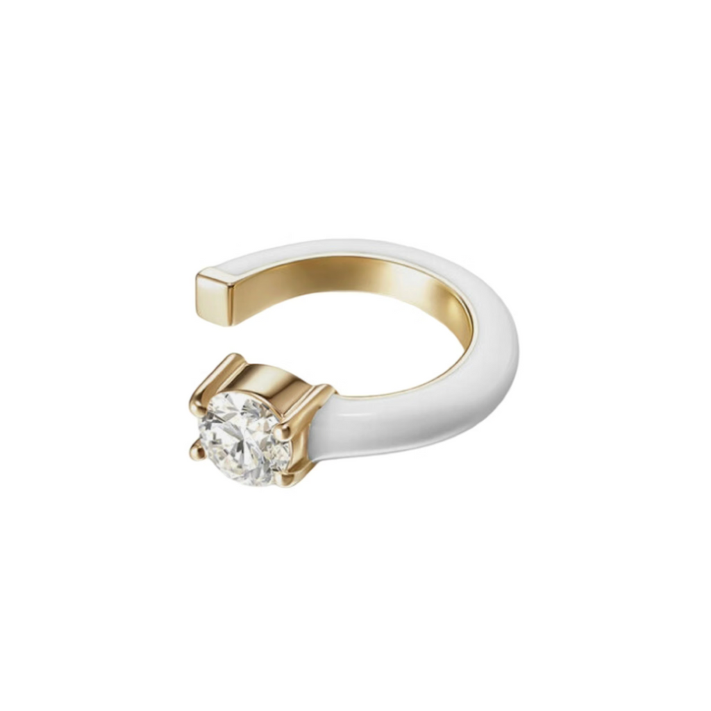 Melissa Kaye White Enamel Diamond Aria U Ear Cuff