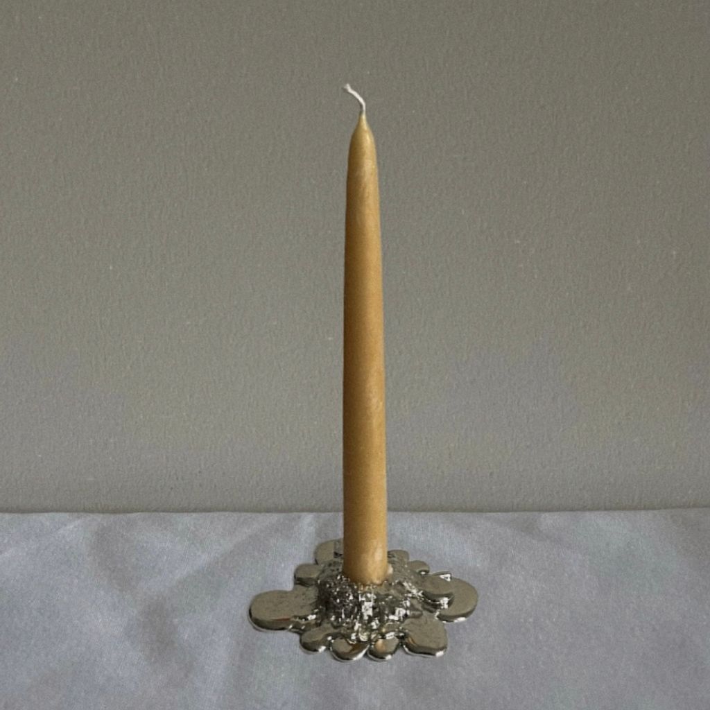 This molten-shaped candle holder, elegantly showcases the fluid characteristics of its raw and organic material. Each piece is created using freeform casting, making every candle holder one of a kind.